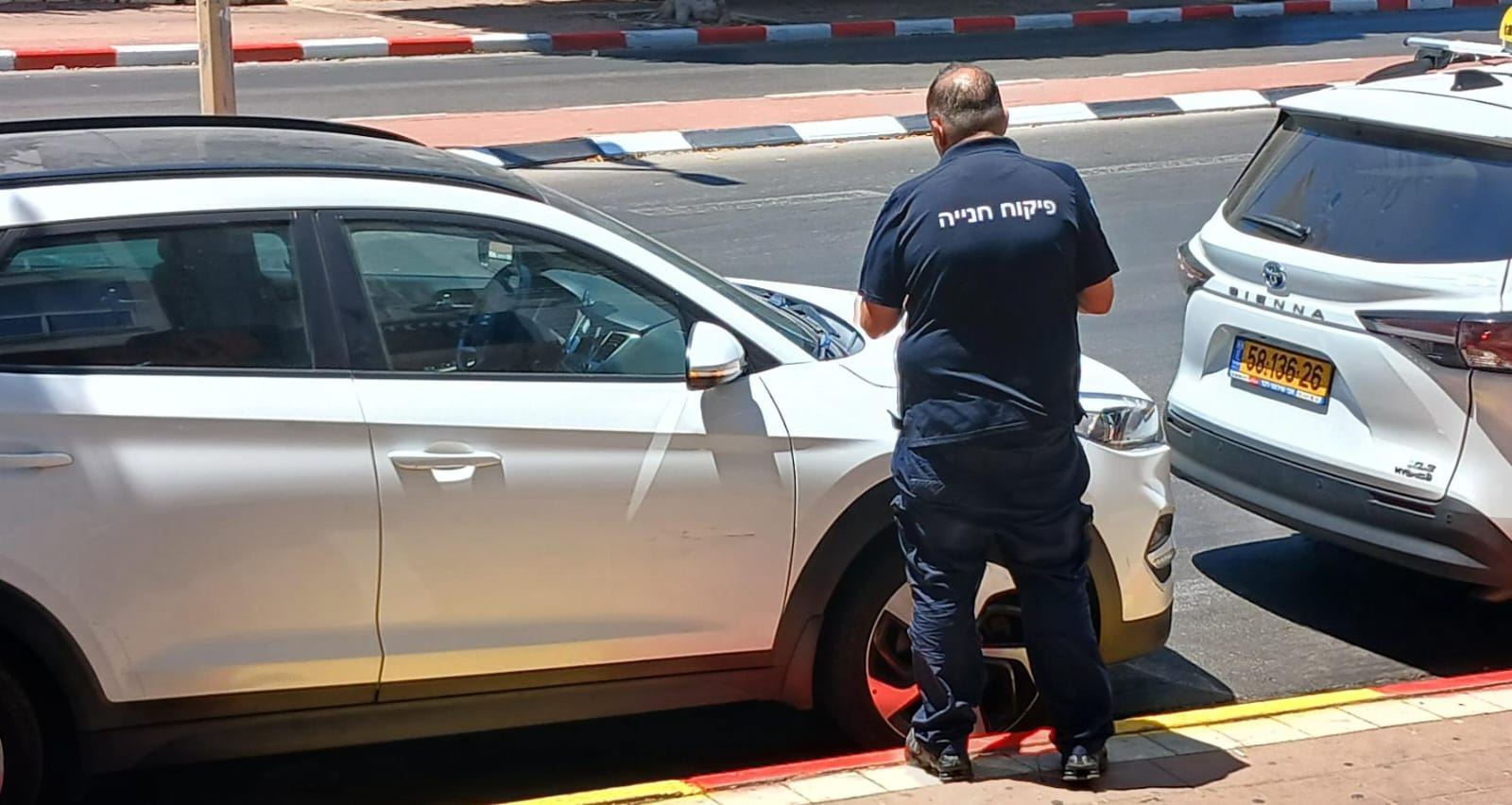 מקומם: פקח של הפיקוח העירוני נתפס בעין העדשה כשהוא מחלק דו"חות, אך בה בעת חונה בעצמו באדום לבן ובצומת בצורה המסכנת את עוברי הדרך