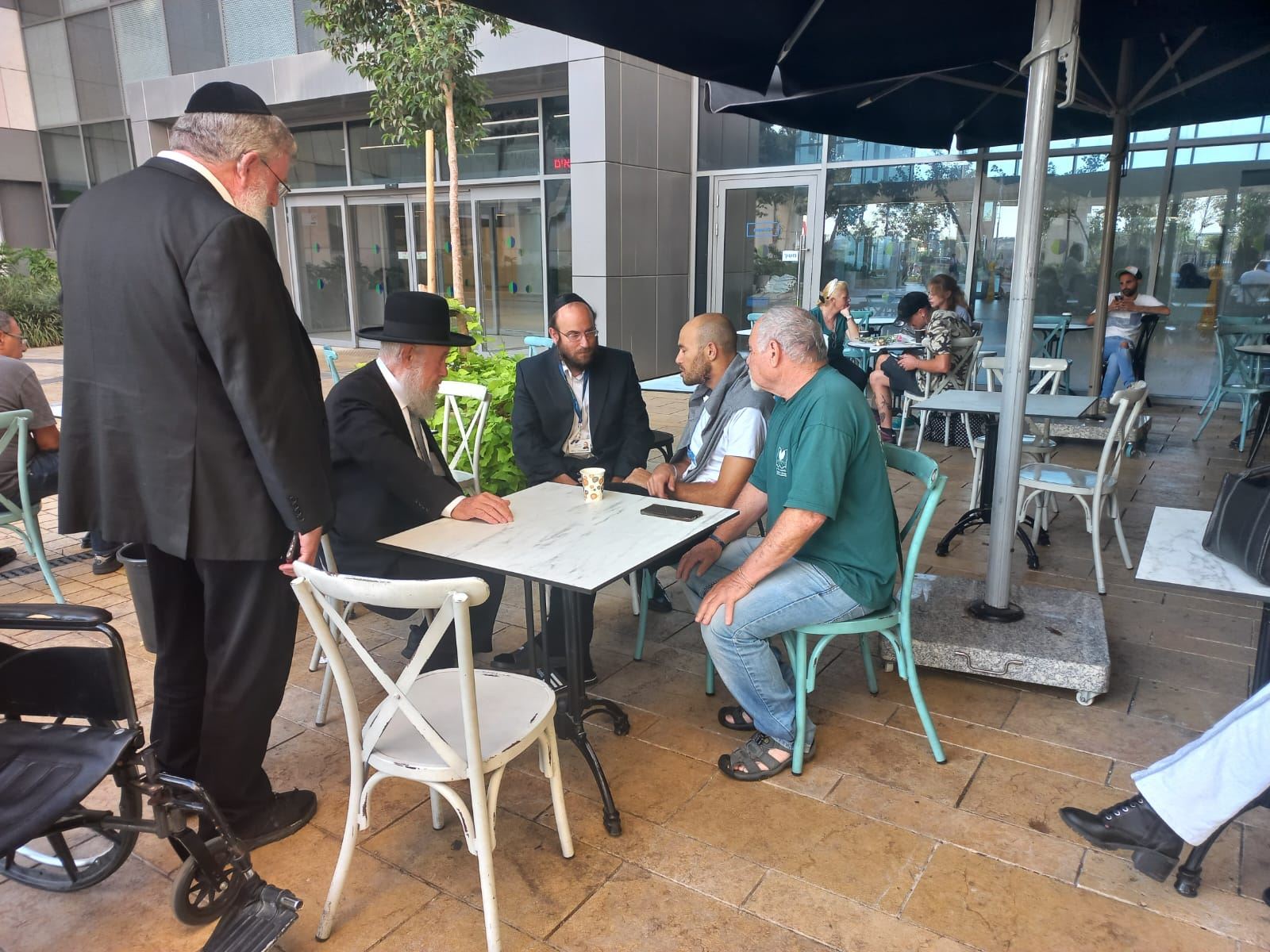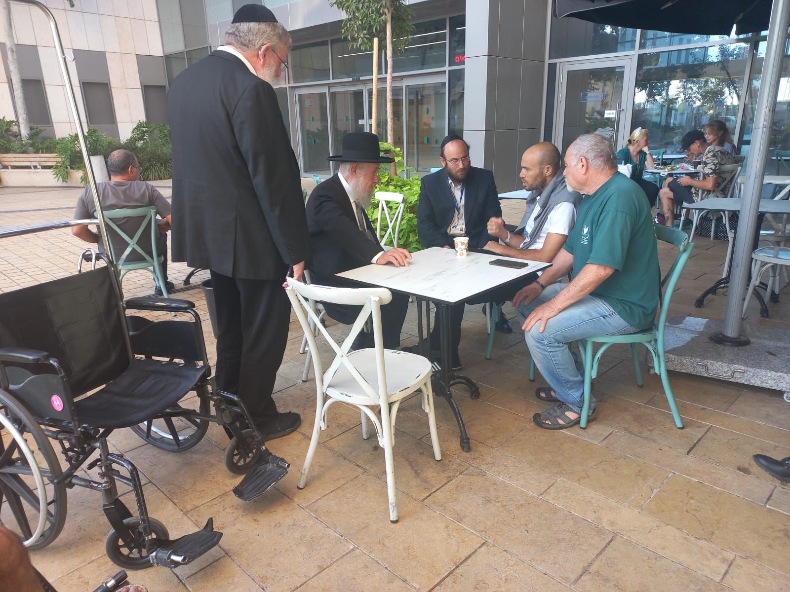 הרב שיינין מבקר את פצועי צהל. מ"ש