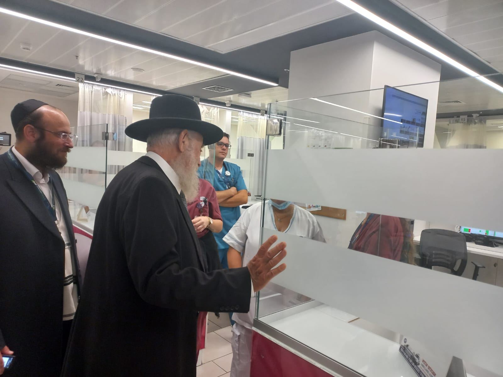 במהלך הביקור עבר הרב בין כל המחלקות, כאשר הוא מבקר במח' לטיפול נמרץ את השוטר שנפגע מירי דו צידי בתקרית שאירעה ליד מלון לאורנדו. בצאתו חיזק הרב את בני המשפחות שהמתינו מחוץ למחלקה כאשר חברים של החיילים הפצועים ניגשו לרב וביקשו את ברכתו טרם צאתם לחזית.