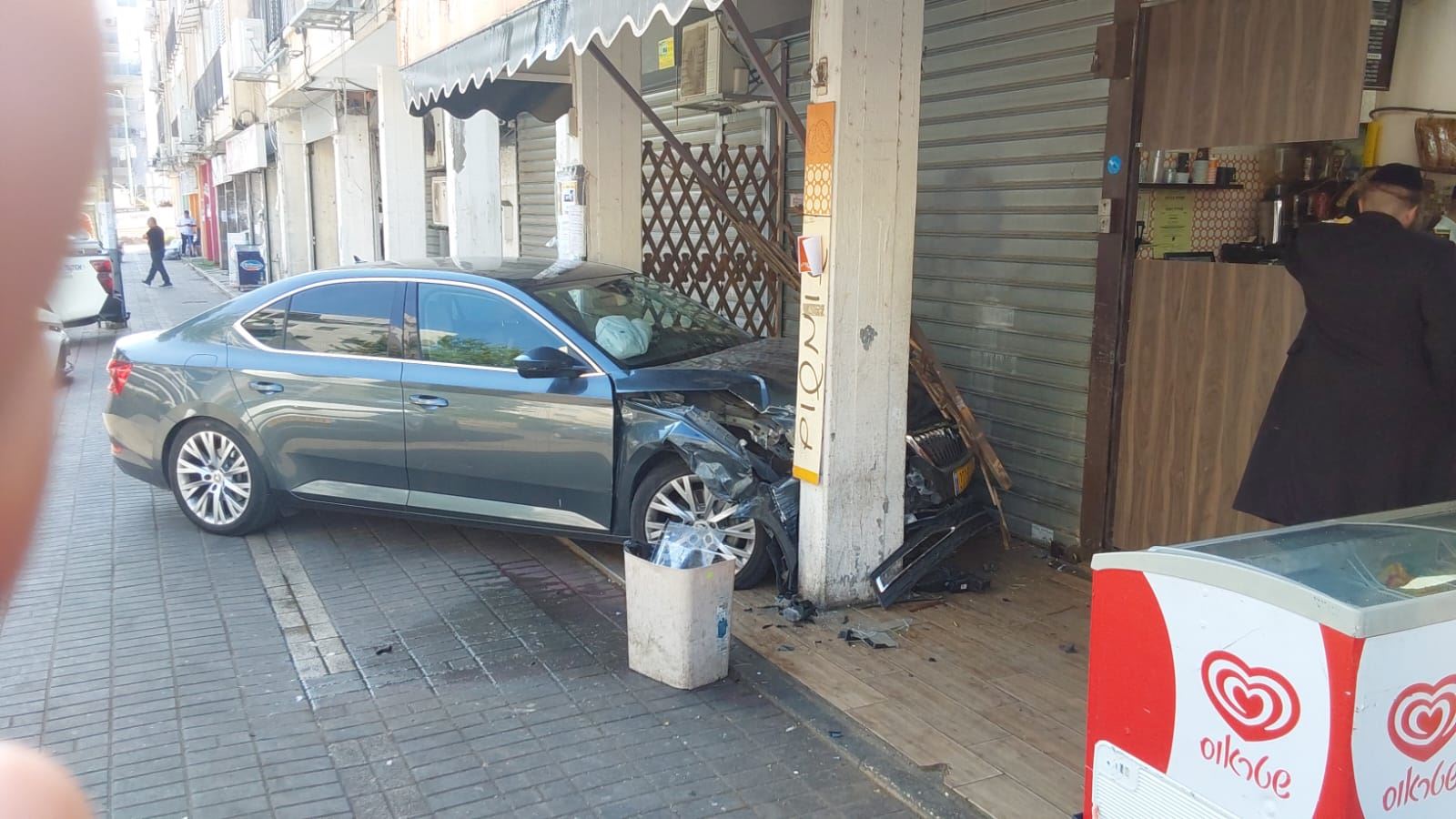 "היה כאן נס גדול היום", אומר לנו אחד מעדי הראיה. "מדובר במדרכה שוקקת חיים, שכן מלבד 'שומשום' יש בה עוד כמה חנויות ובעיקר חנות מכולת שבשעה זו עמוסה. רק בנס הנסיעה המופרעת לא גרמה לאסון בנפש".