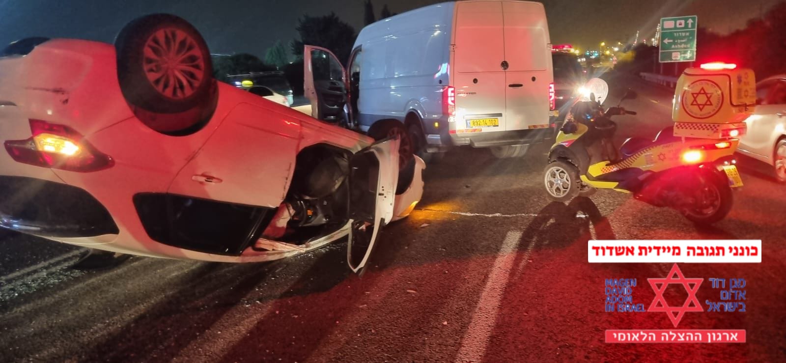 רכב התהפך בתאונה בצומת ניר גלים סמוך לאשדוד