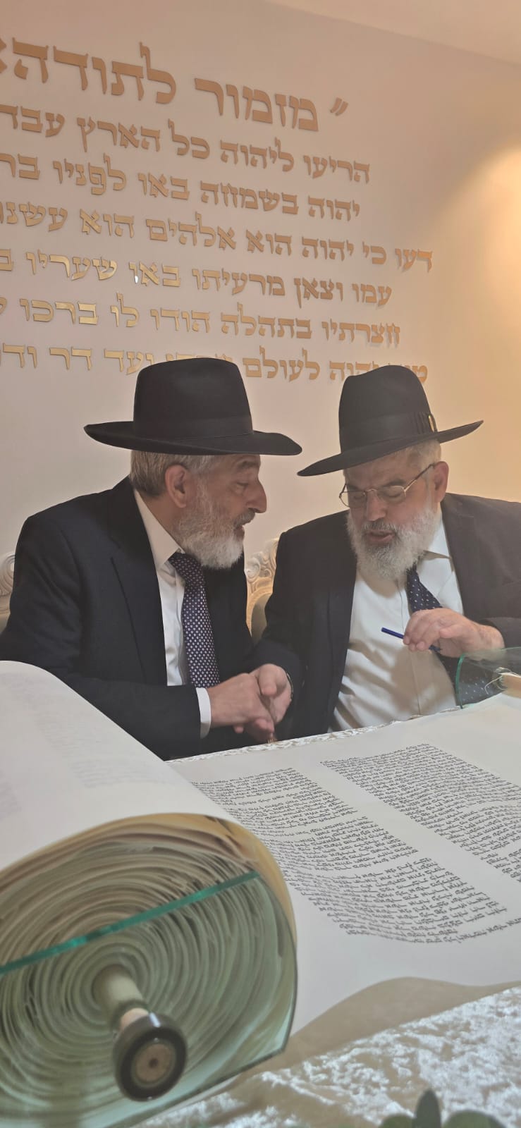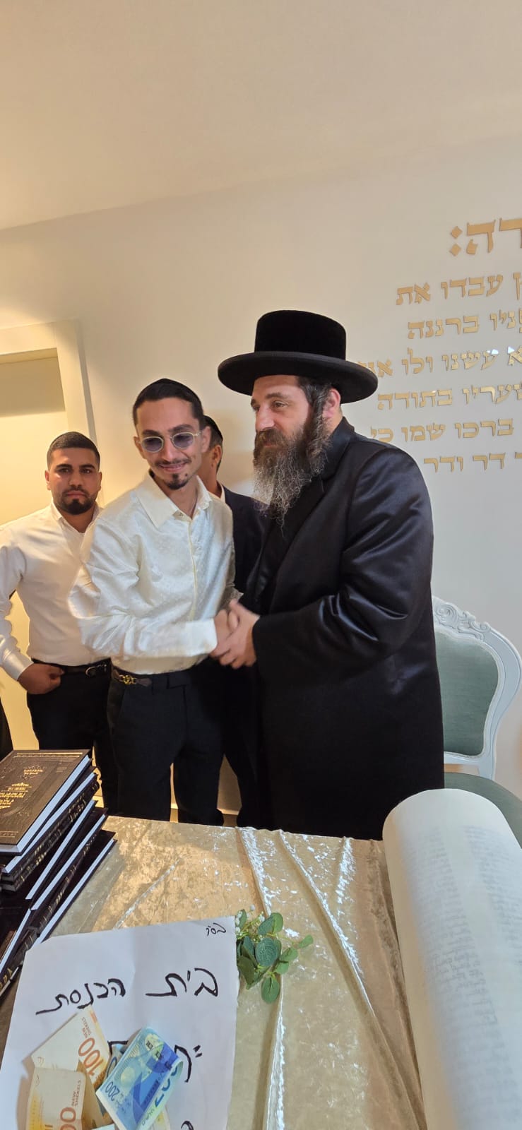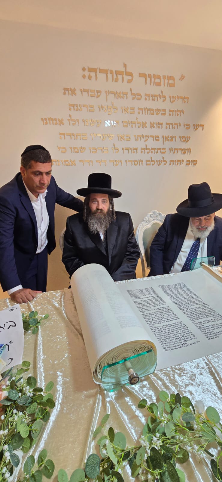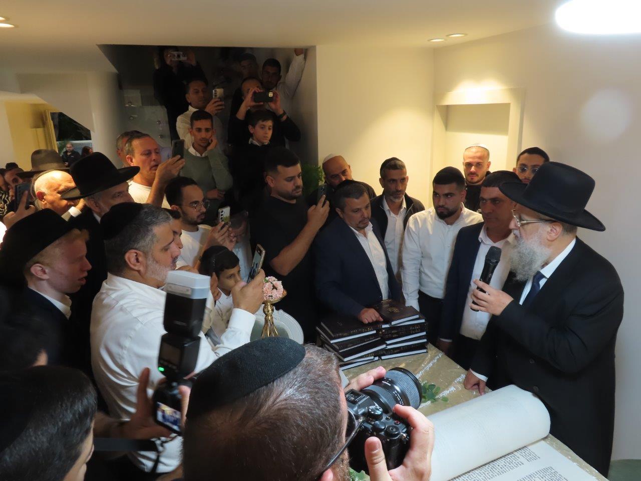 מעמד כתיבת האותיות התקיים בבית המשפחה ברובע ט', בהשתתפות רבנים חשובים, אדמור"ים ואישי ציבור ובראשם הראשון לציון הגאון רבי דוד יוסף שליט"א הרב הראשי לישראל.