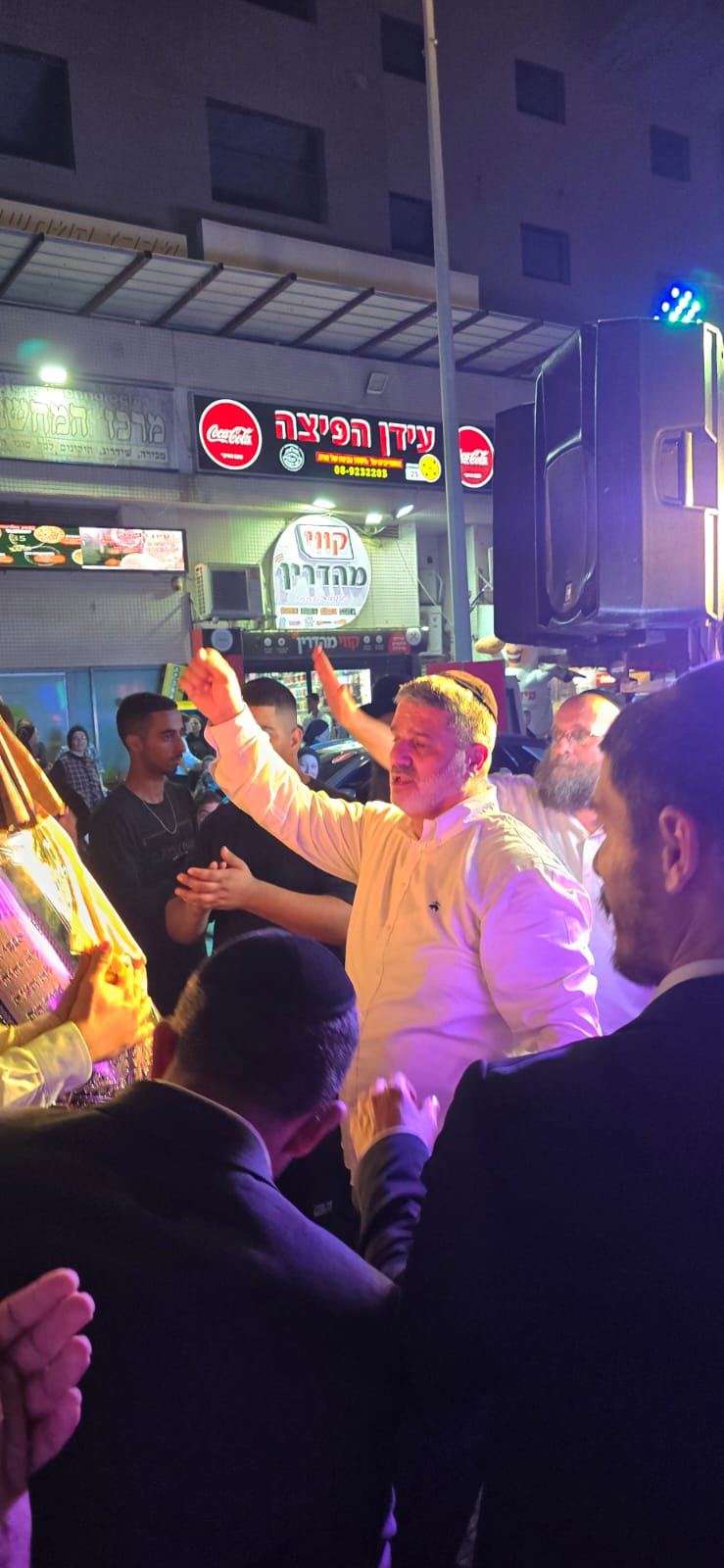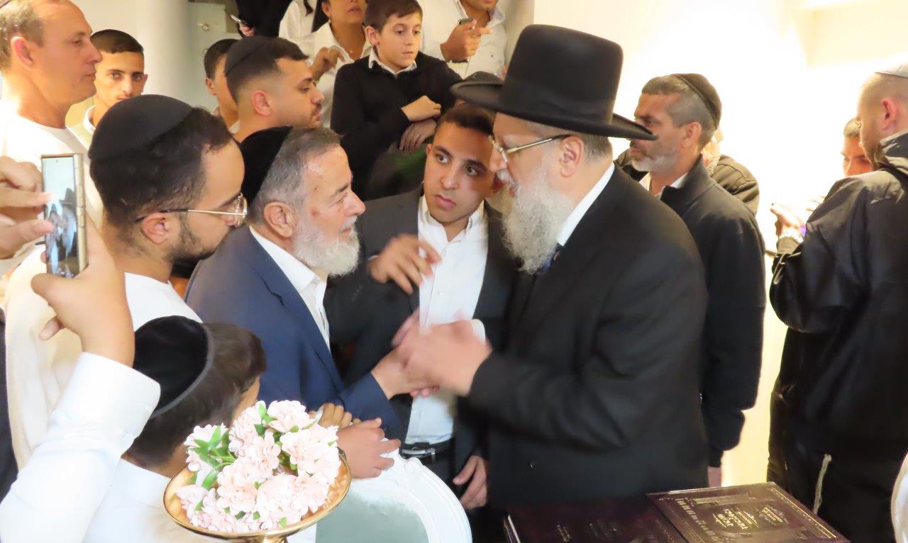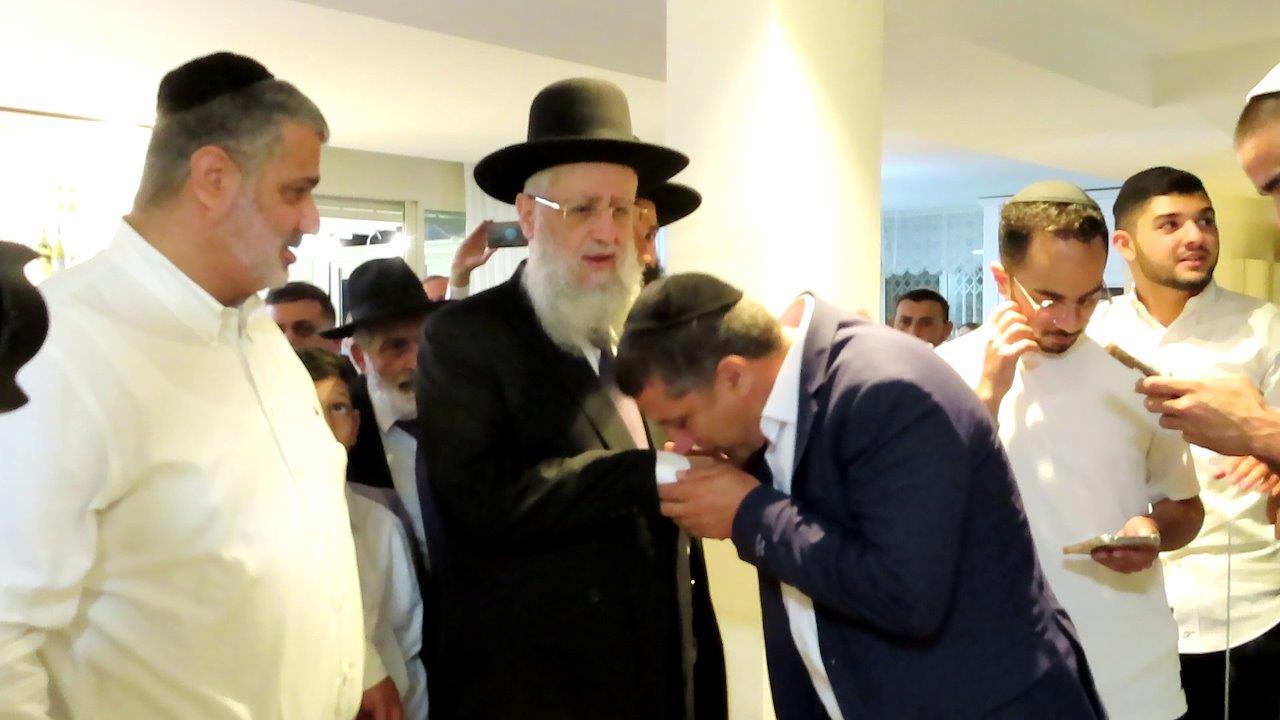 בסמוך לבית הכנסת "יסוד ושורש העבודה – חסד לאביעד", יצאו לקראתם המתפללים עם ספרי תורה בידיהם ופתחו במעגלים עד להכנסתם להיכל בבית הכנסת, ברוב עם.