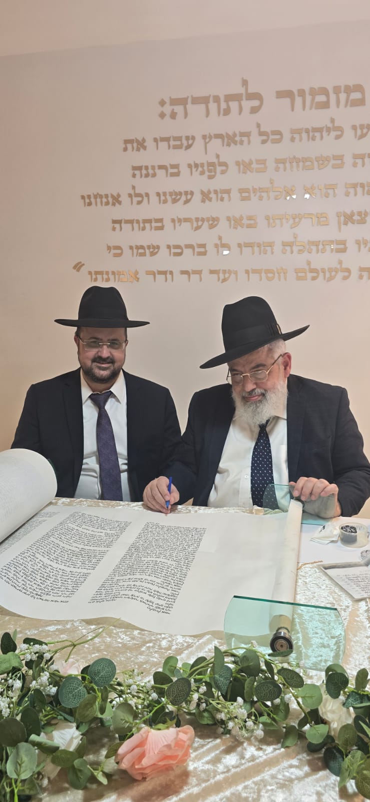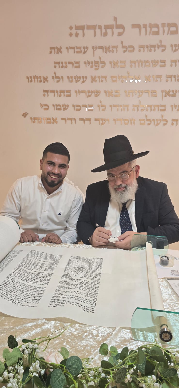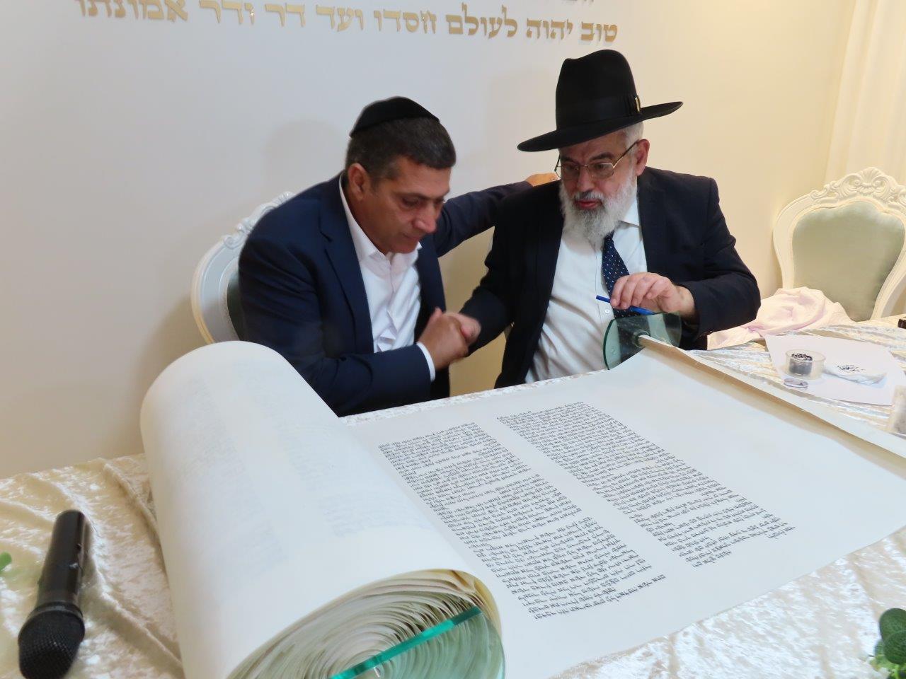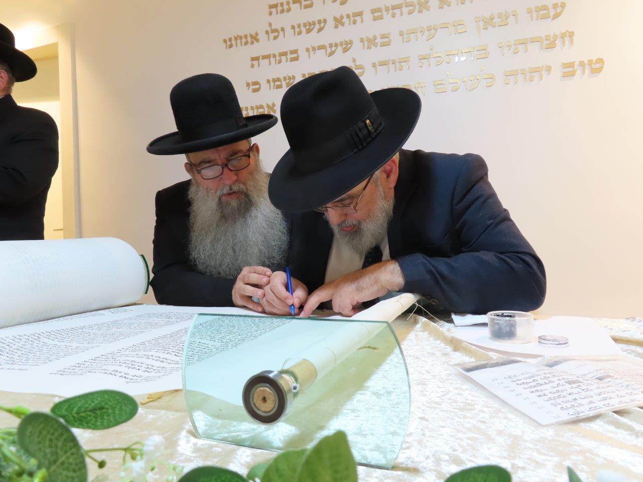 במשך כל זמן כתיבת האותיות, נכח הרה"ג ר' מכלוף עזריאל רב קהילה, ראש כולל "בני תורה" ורב בית הכנסת לשעבר. את האות האחרונה כתב וסיים בעלה ר' אורן שמחי הי"ו.