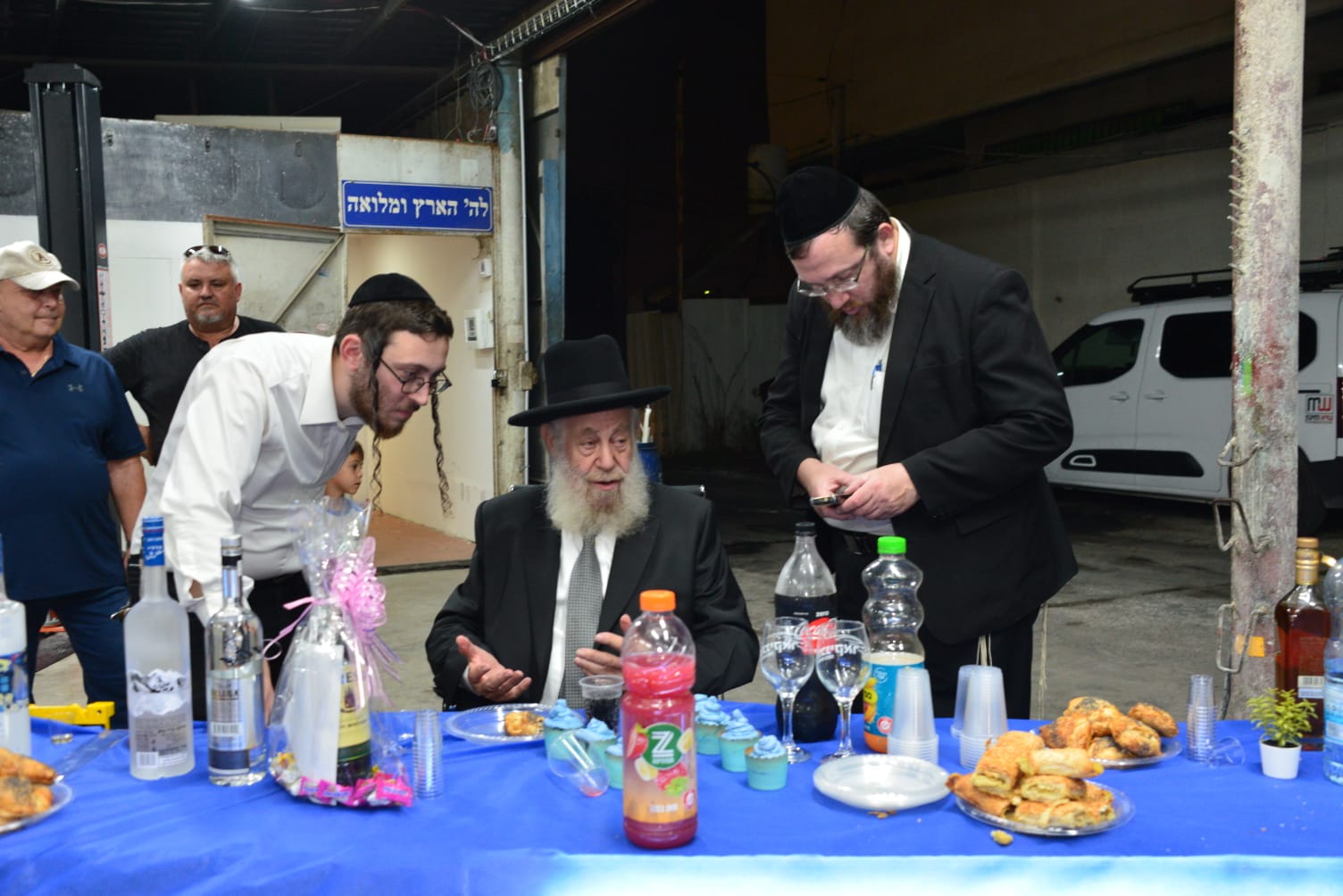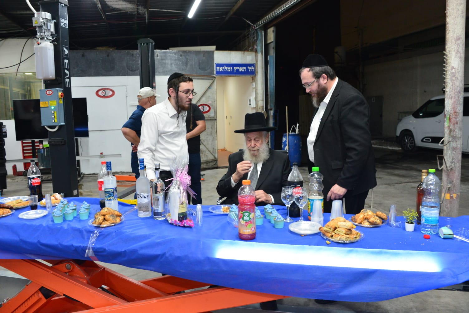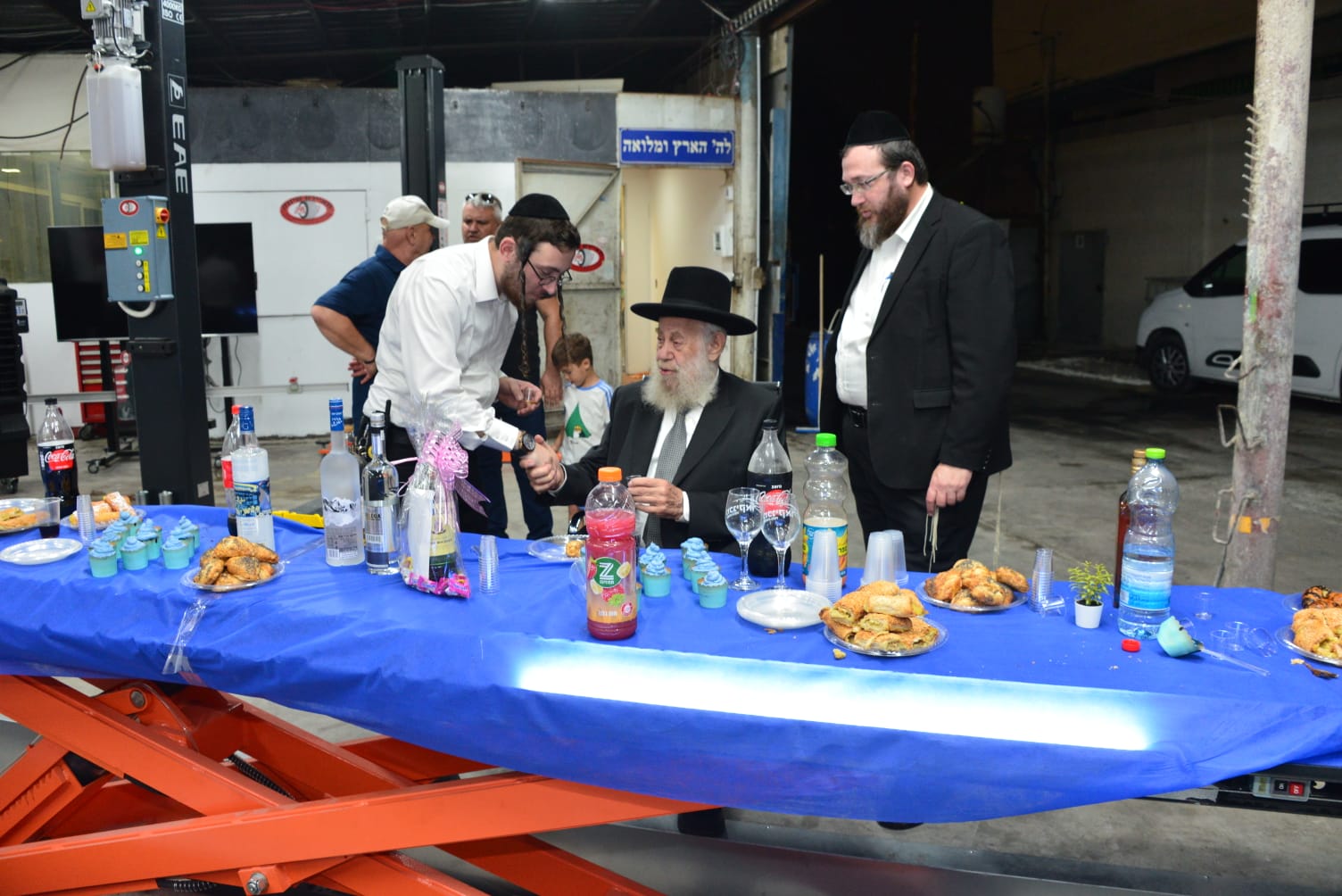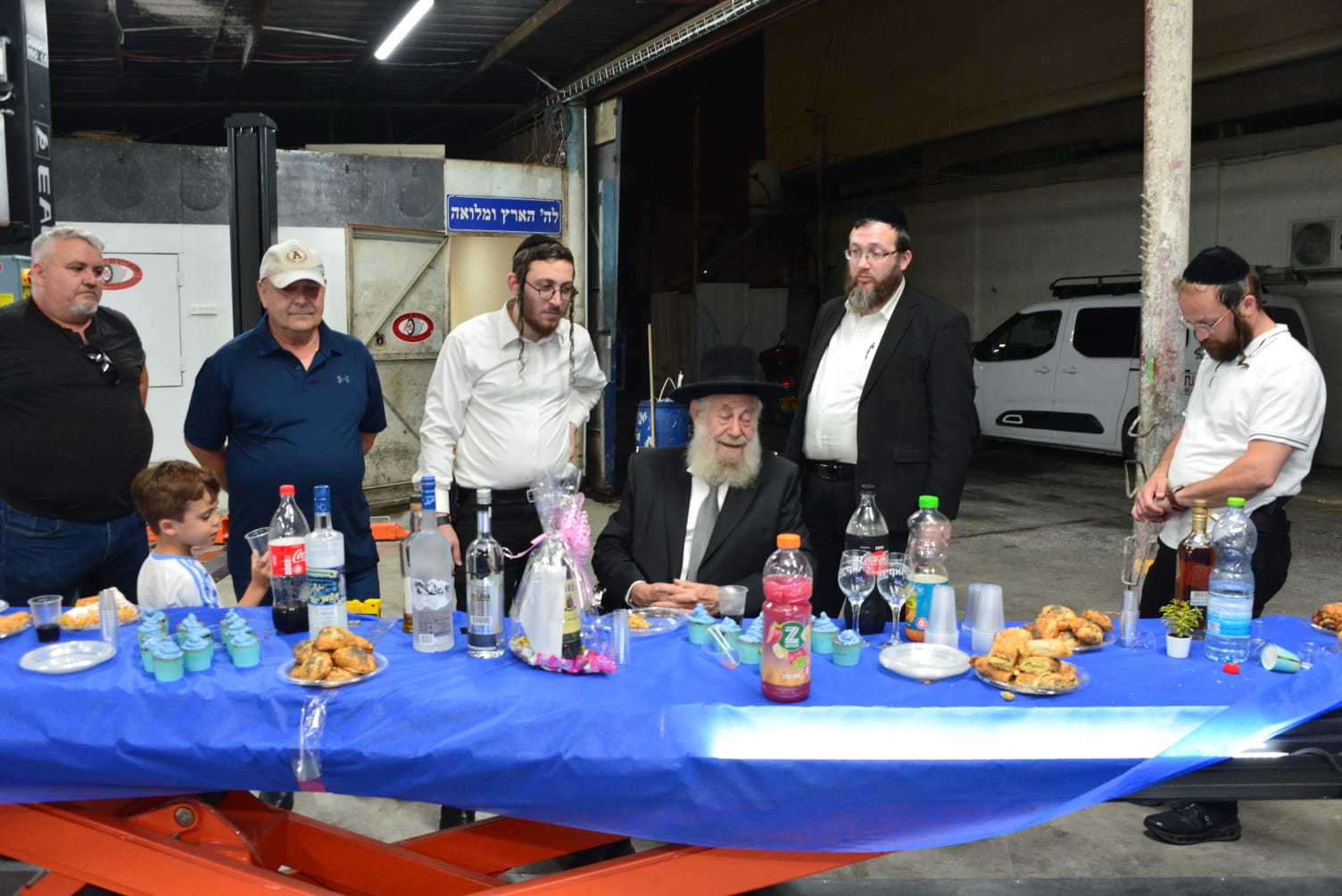 לאחר שחנך השבוע את המוסך הראשון בעיר שבבעלות חרדית, אירח בעלי מוסך 'מכניקאר', ר' בנצי טכובר, את רב העיר הגר"י שיינין שערך 'לחיים' במוסך ובירכו בהצלחה
