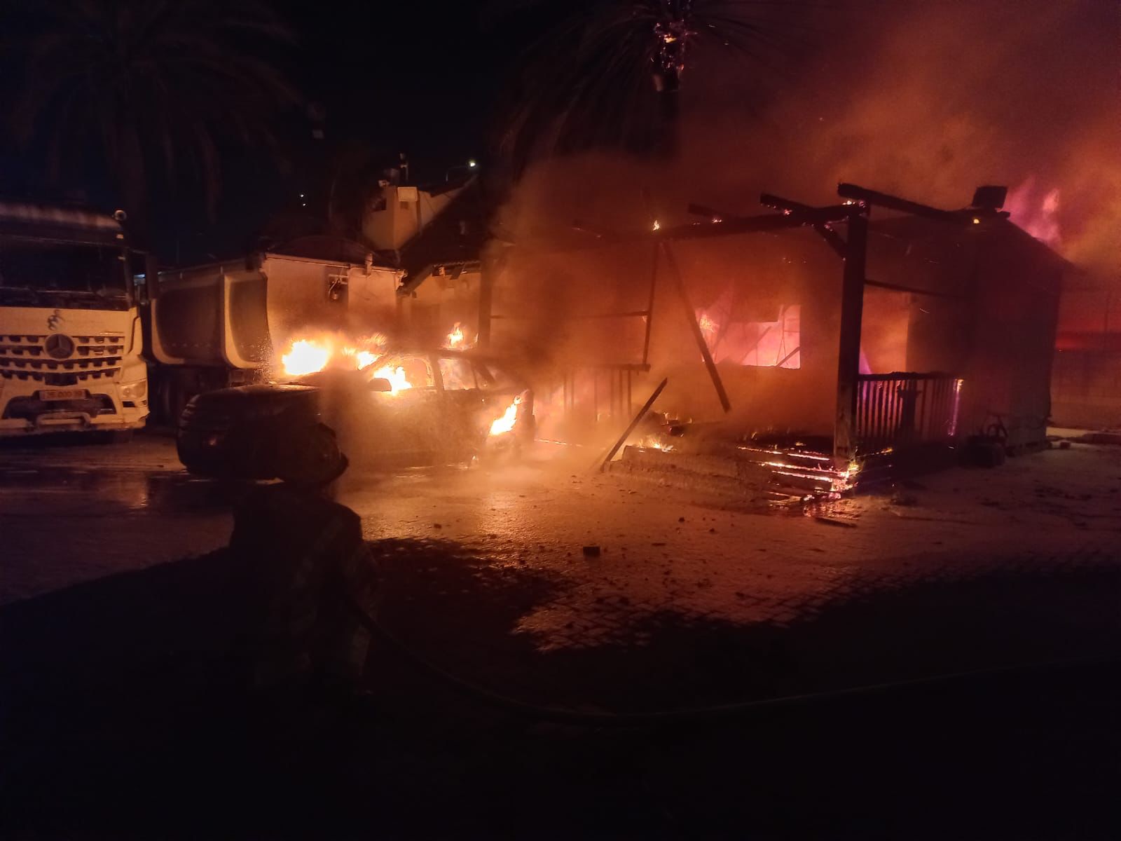 על פי הידוע, מדובר בשריפה של כלי רכב ומבנה. לוחמי האש שהגיעו לזירה פעלו במהירות למניעת התפשטות האש למשאיות רבות שחונות במקום, ומנעו נזק כבד ושריפה גדולה.