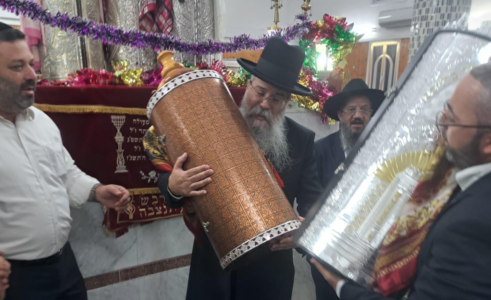 הגר"מ מוגרבי ערך את ההקפות השניות בבית הכנסת 'י"ג קדושי אשדוד' כהוקרה לביה"כ שבו שוכנת הישיבה