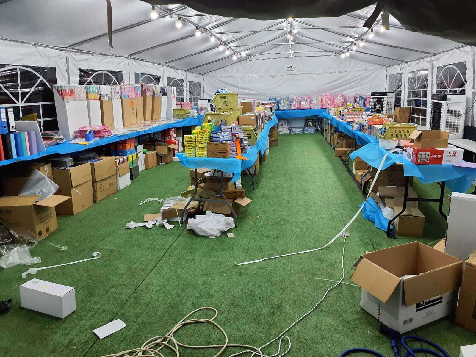 למרבה הכאב האהל פורק, וכל התכולה שהיתה בו,  ילקוטים, מחברות וספרי לימוד  וכל האביזרים הדרושים לחזרה לבית הספר, שונעו למחסן קרוב.