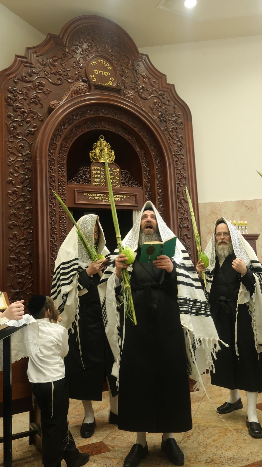 ויעשו כולם אגודה אחת: כ"ק מרן האדמו"ר מפיטסבורג שליט"א בבית מדרשו בעבודת הנענועים הקפות והושענות, עם האתרוג המובחר בידו (פריעדמאן-מרוקו) אותו העניק לו באהבה רבה ובידידות עוז הגאון הצדיק רבי מאיר אבוחצירא שליט"א רב קהילת 'תפארת רפאל' רובע הסיטי בעיר בערב החג.