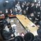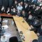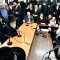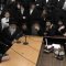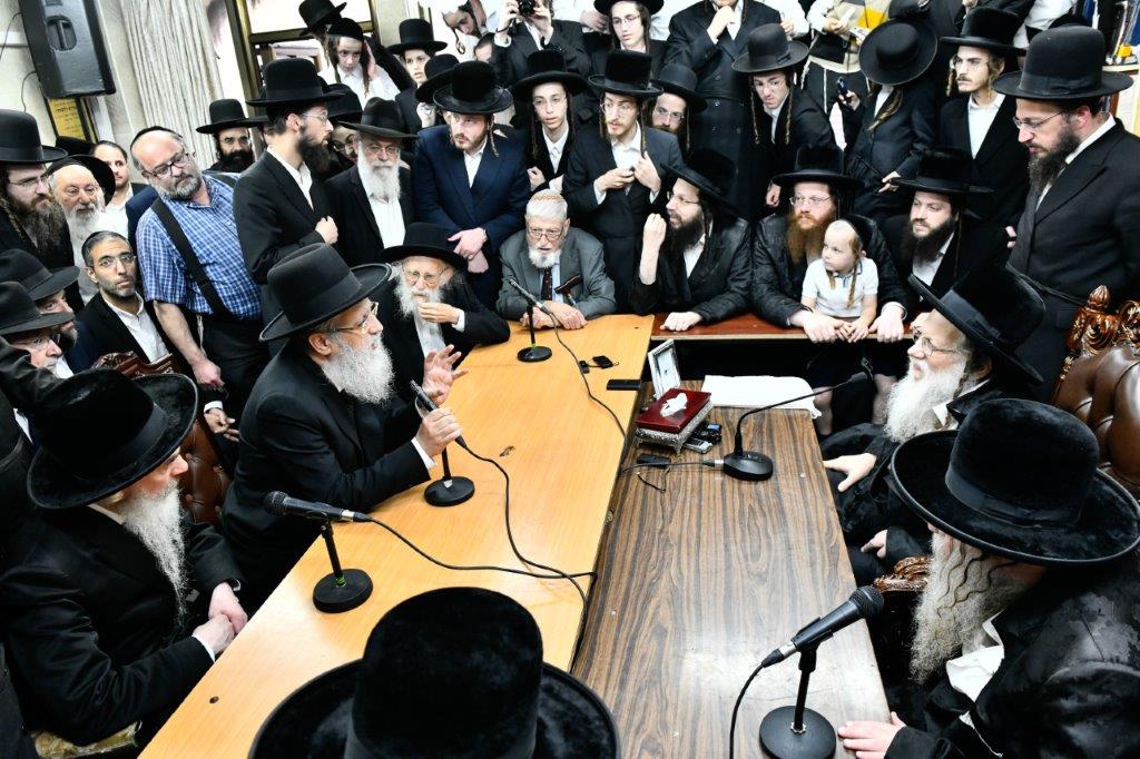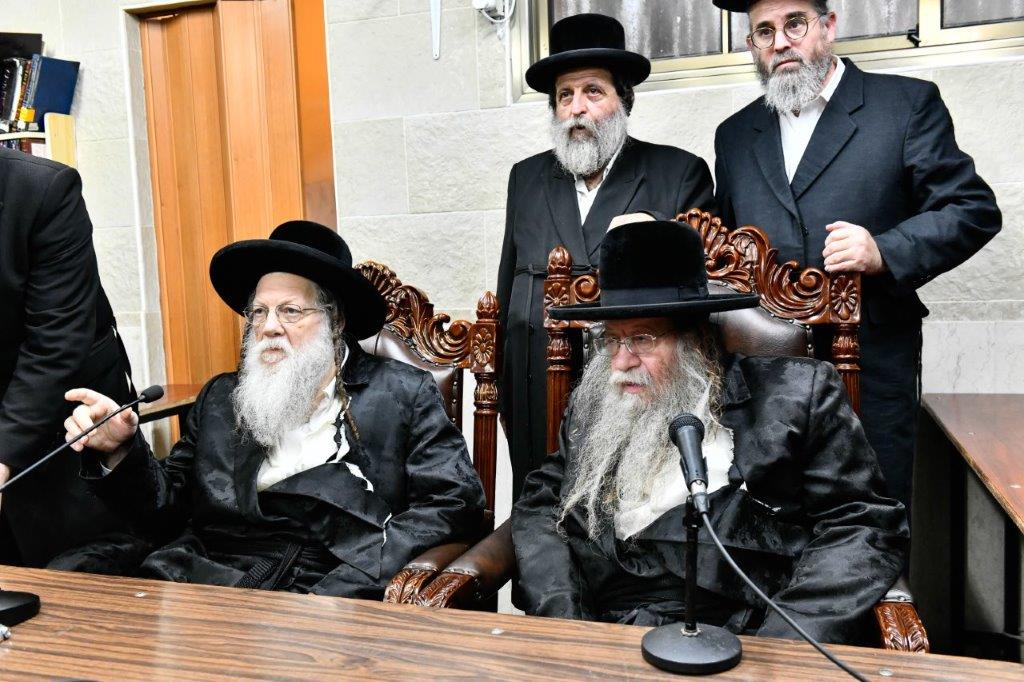 בניה האדמור"ים ממודזיץ וקוז'מיר ישבו יחד באולם שע"י בית הכנסת של החסידות ברחוב חבקוק בבני ברק.