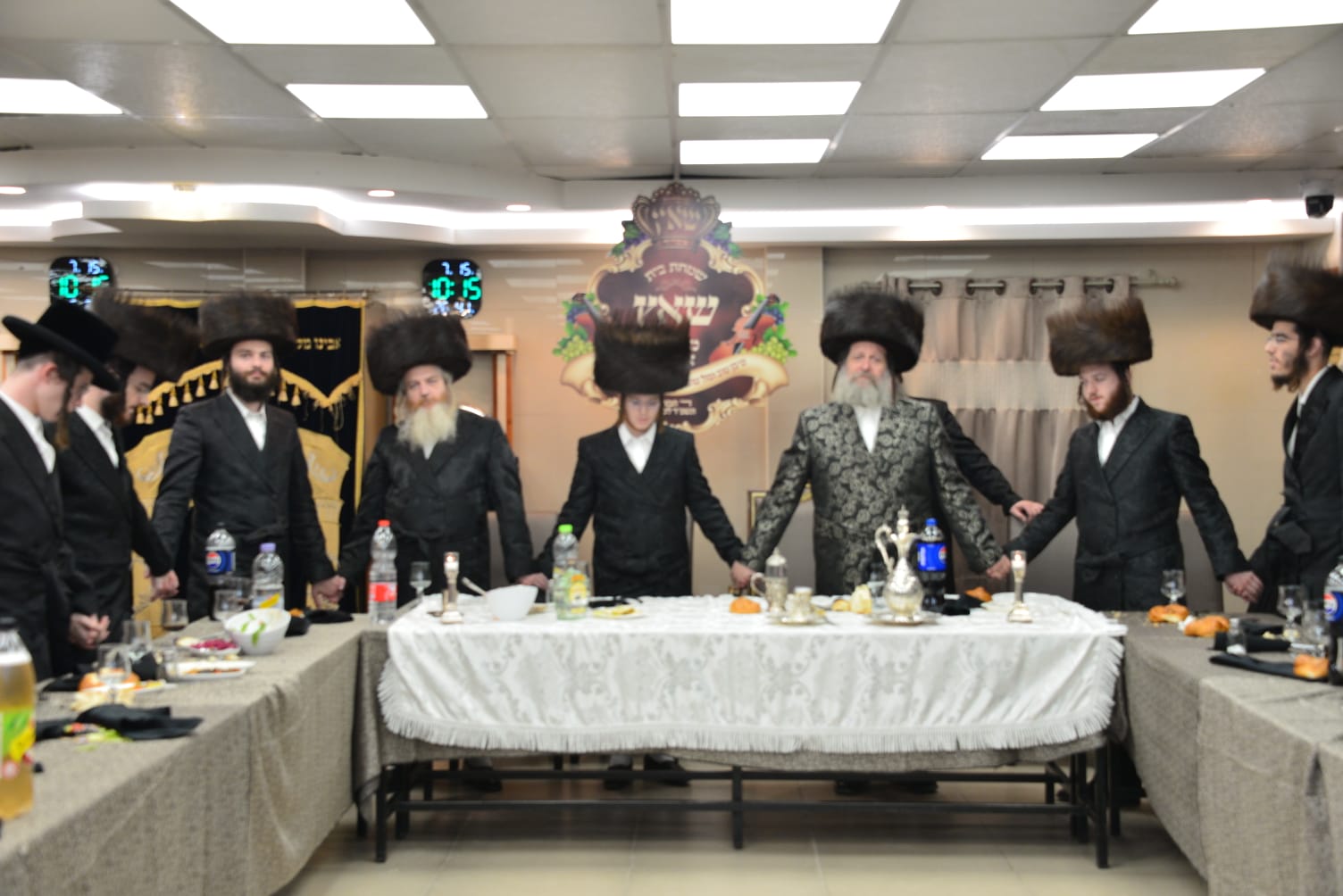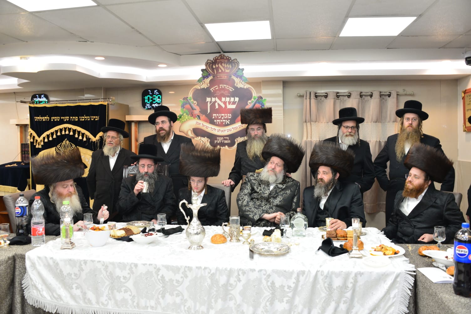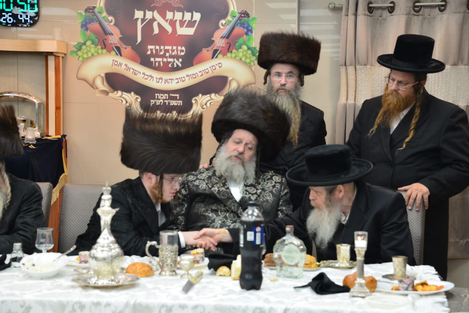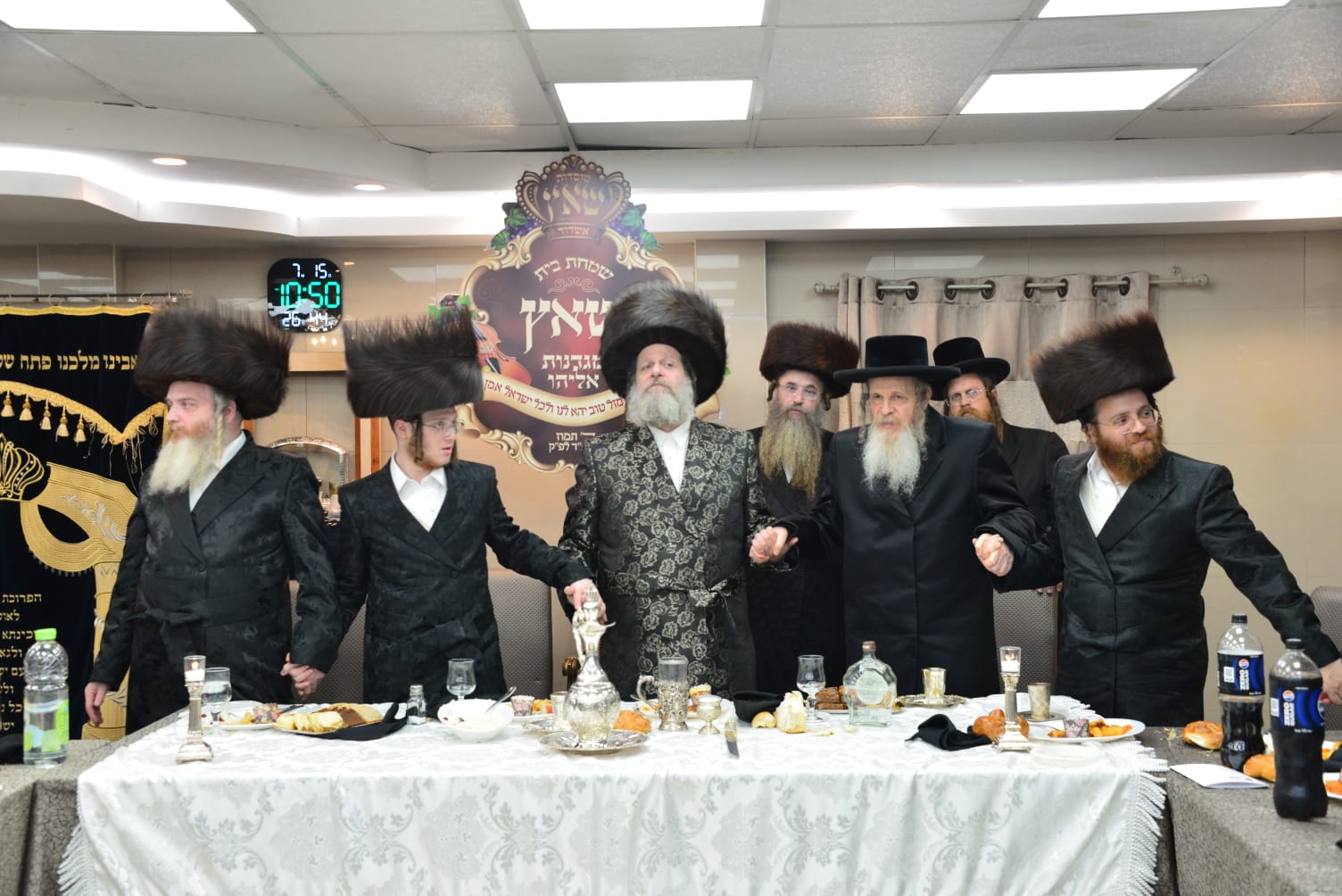 לכבוד שמחת נישואי בת כ"ק האדמו"ר משאץ שליט"א עם בנו של הגה"צ אבדק"ק מגדנות אליהו שליט"א ערכו בני המשפחה 'שבע ברכות' לכבוד אביהם הגדול האדמו"ר שליט"א.