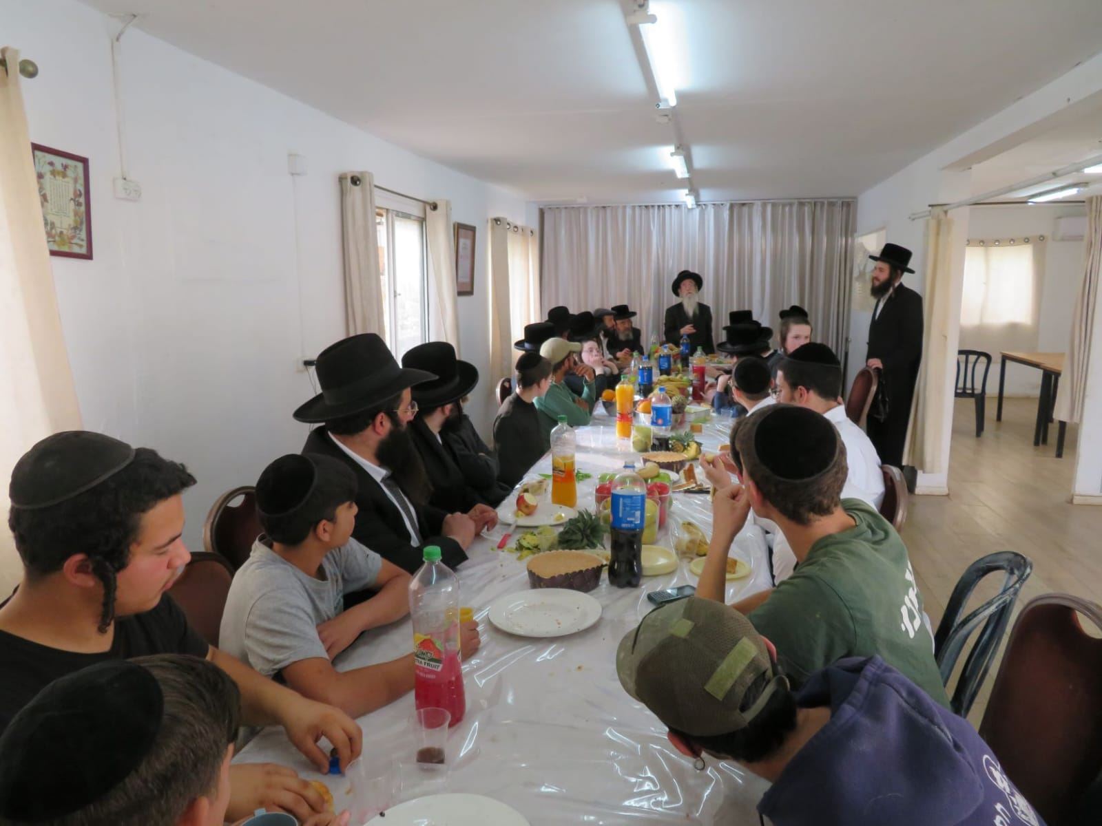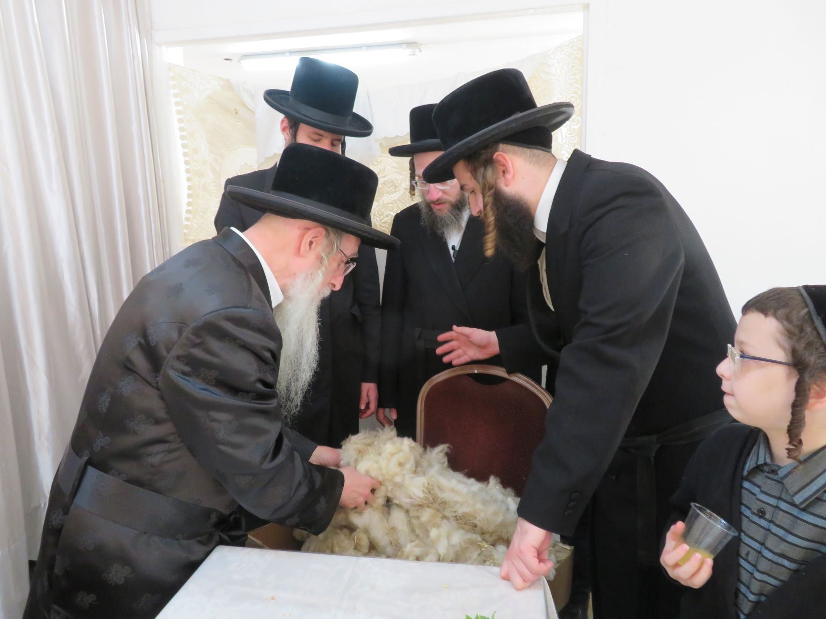 בהמשך ניגשו למקום גזיזת הצאן, שם ערך האדמו"ר קניין בשטח שעמדו שם 5 כבשים, וגזזו את הצאן. לאחר מכן התקיימה מסיבת לחיים בביהמ"ד של הישיבה שבה משקיעים בבחורים הגדלים בדרך ייודית, כאשר כ"ק האדמו"ר נושא מדבריו בפניו הבחורים.