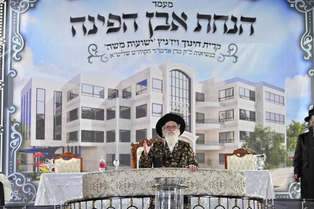 אֶבֶן מָאֲסוּ הַבּוֹנִים: האדמו"ר מויז'ניץ ירה את אבן הפינה לקריית 'ישועות משה'