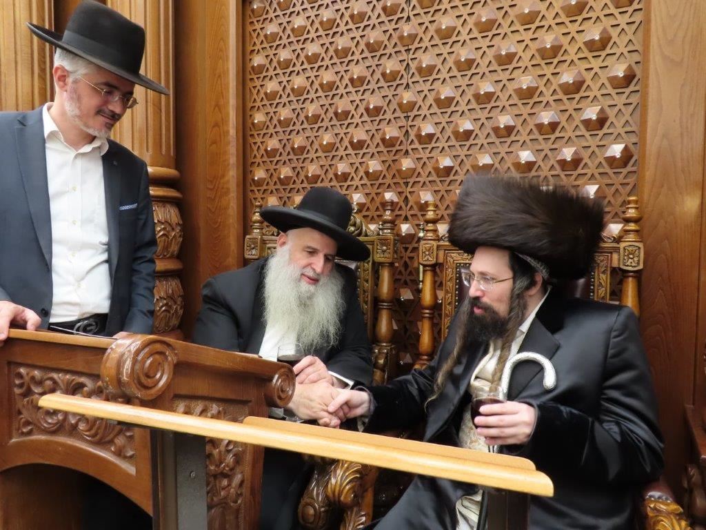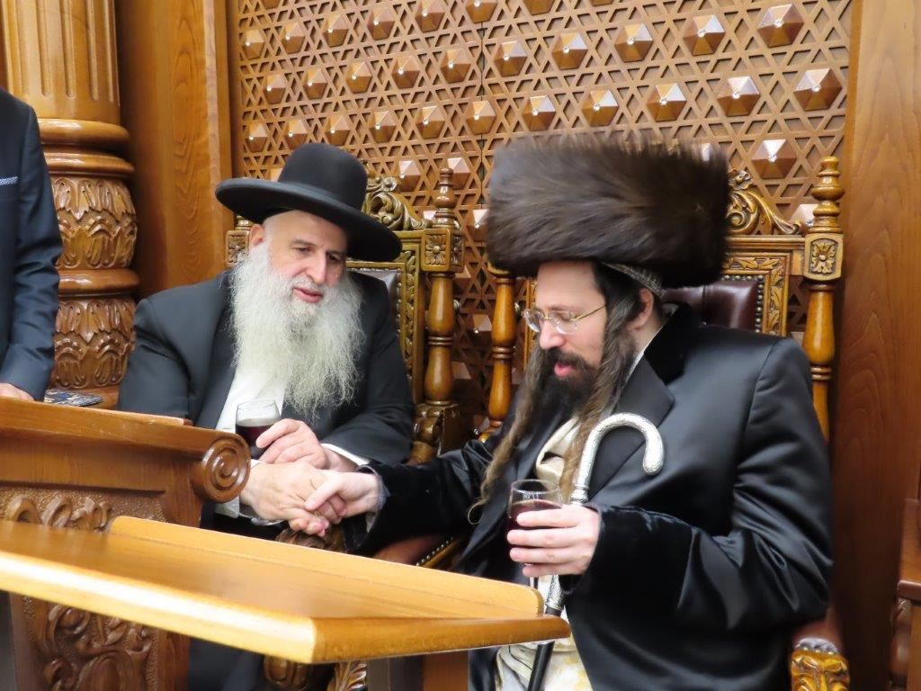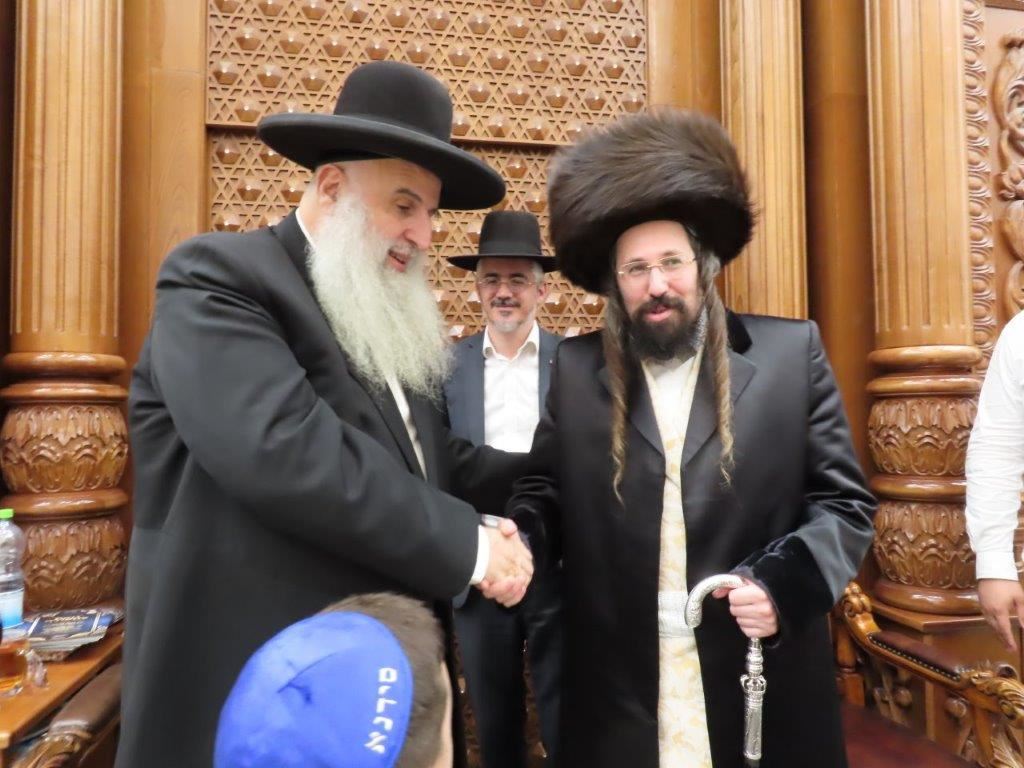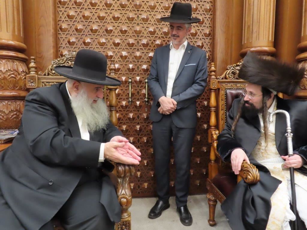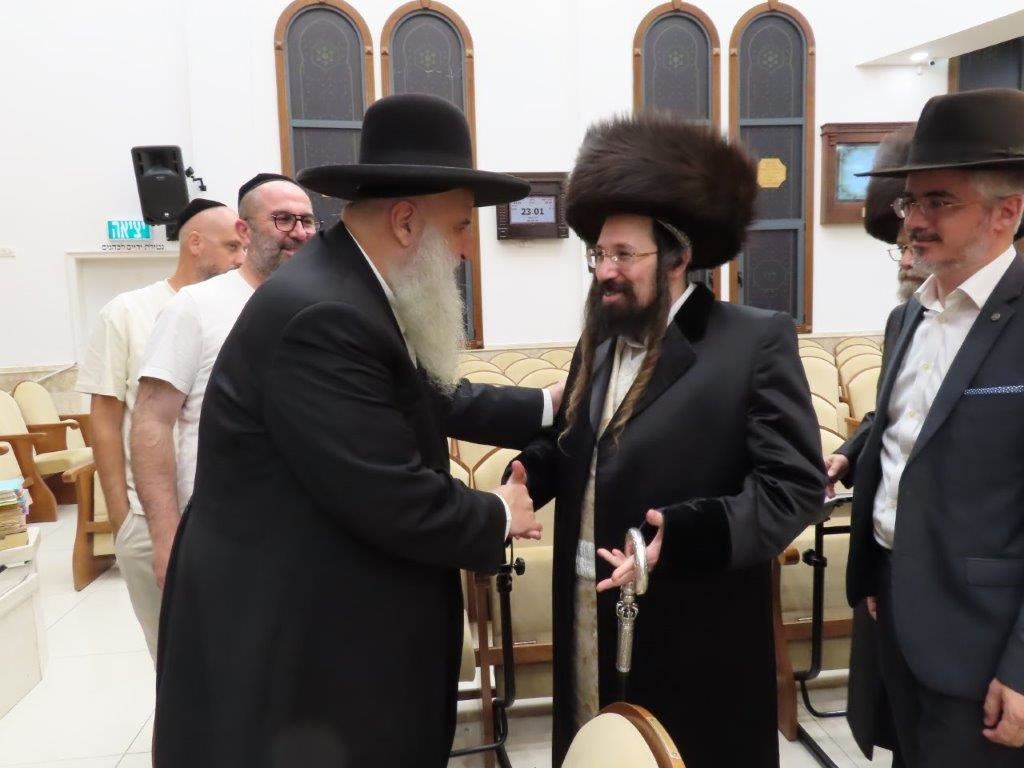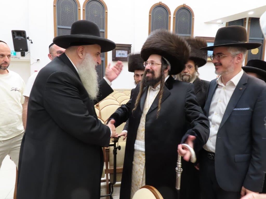 האדמו"ר ממעז'יבוז' שליט"א ששהה בשבת מברכין חודש אב בעירנו, פקד במוצאי שבת את מעונם של אדמור"י ורבני העיר.