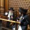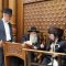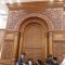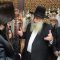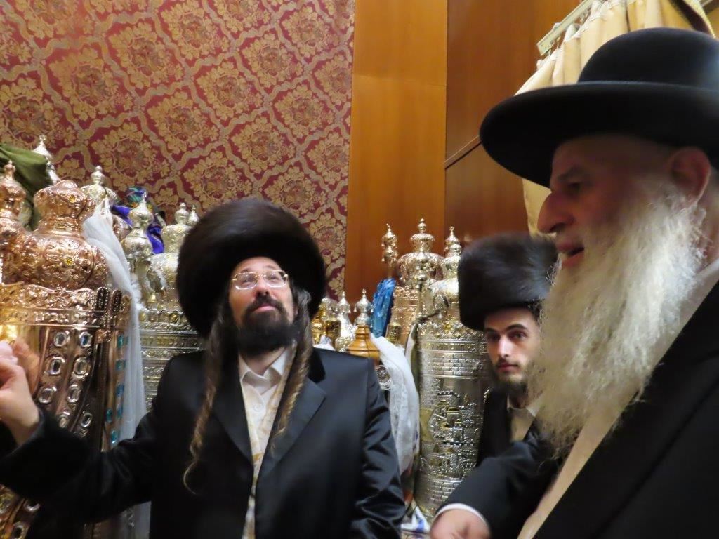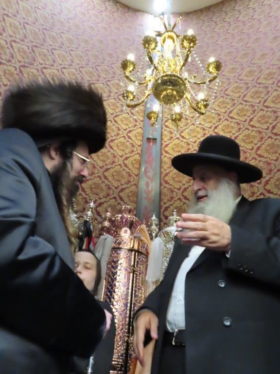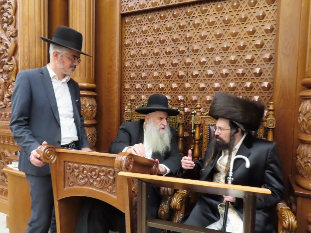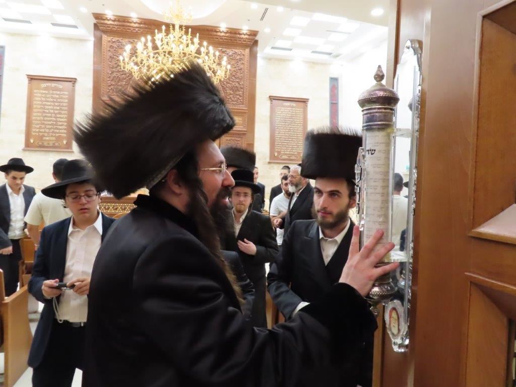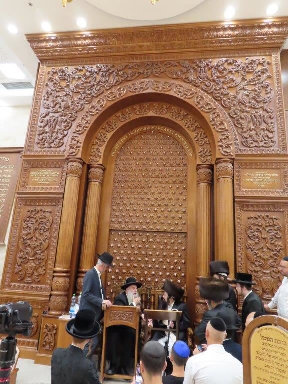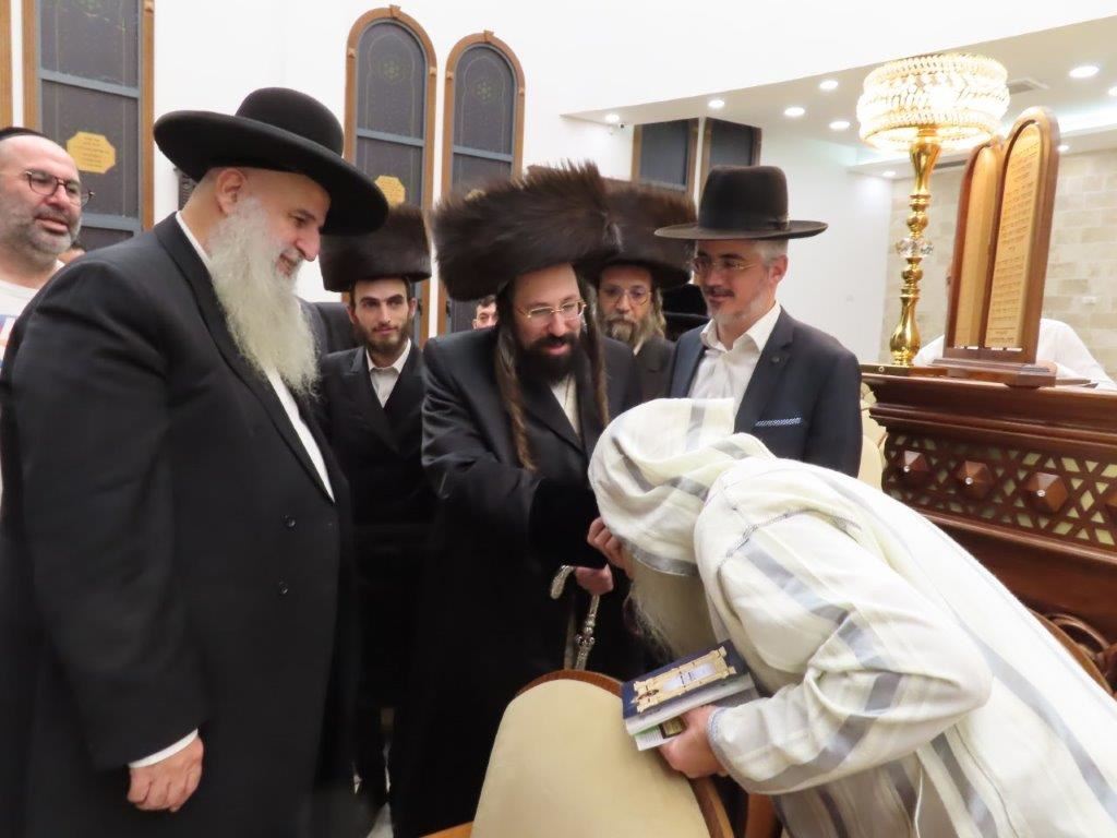 הקהל יצא לקראתו בברכת ברוכים הבאים ושבוע טוב, וישבו יחד למרגלות היכל ארון הקודש המפואר.