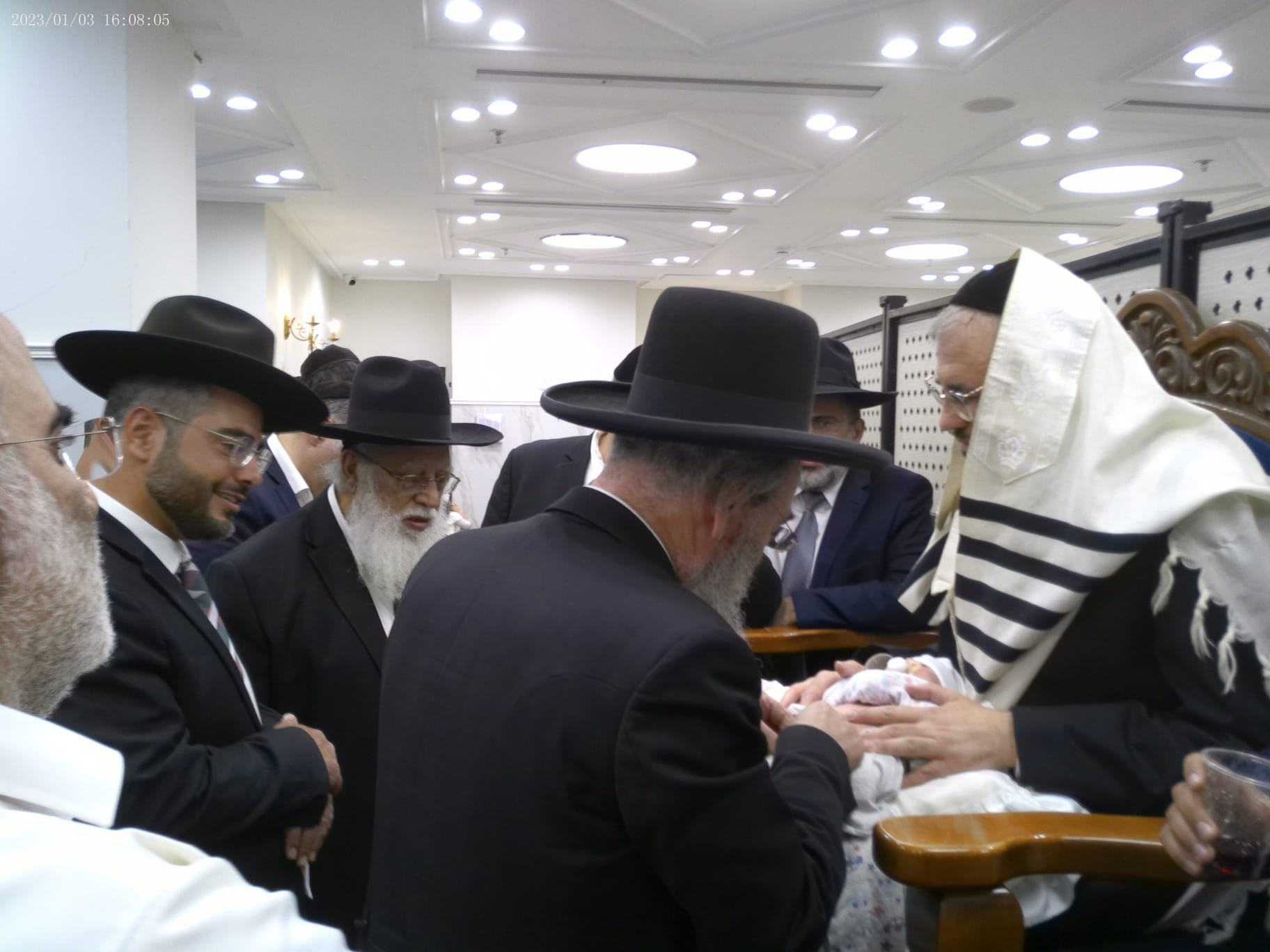 כְּשֵׁם שֶׁנִּכְנַס לַבְּרִית, כֵּן יִכָּנֵס לְתוֹרָה וּלְחֻפָּה וּלְמַעֲשִׂים טוֹבִים: שמחת ברית המילה לנכד הגר"מ כהן שליט"א נשיא איחוד רבני הקהילות בעיר