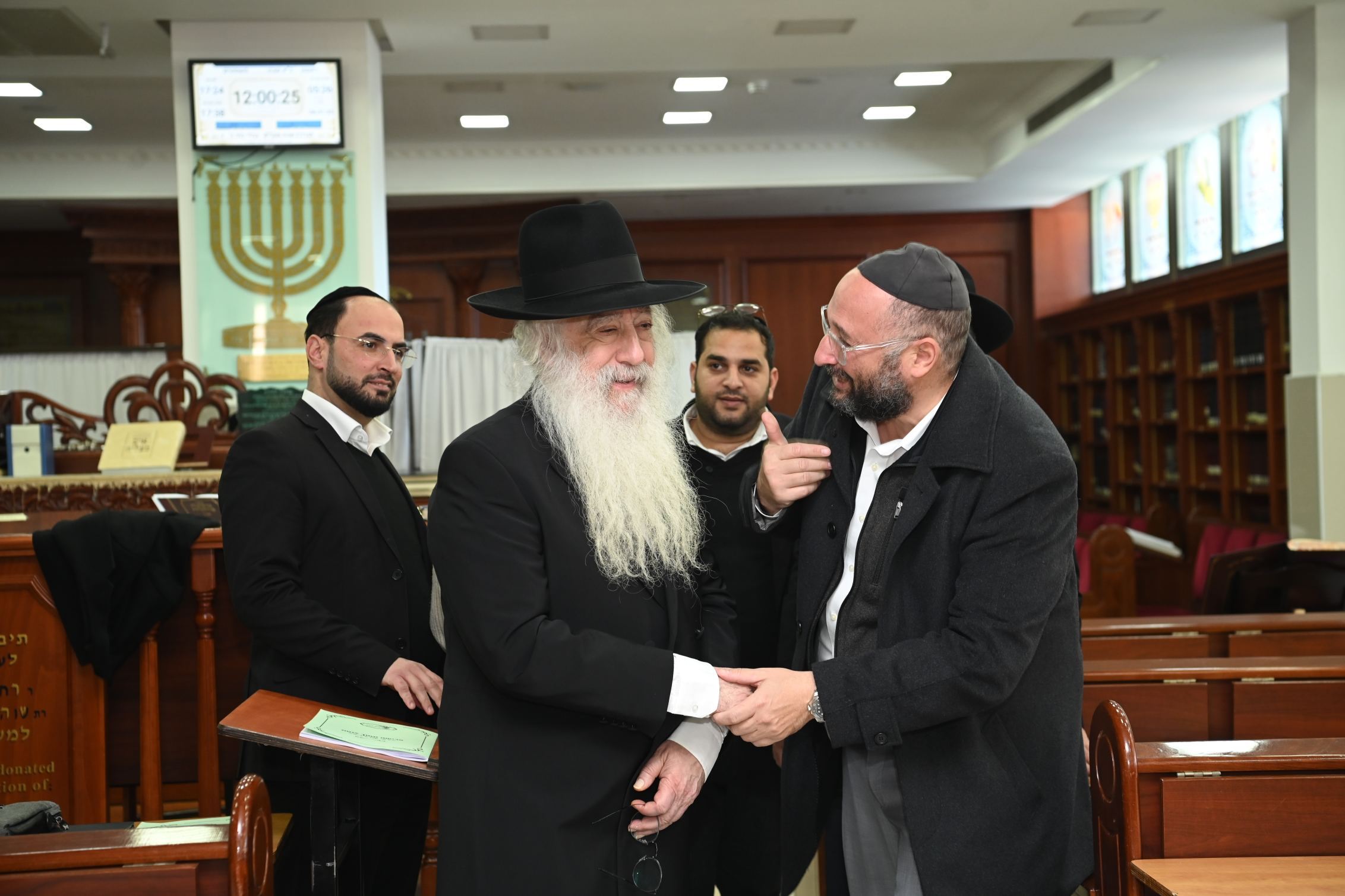 במעמד סיום המסכת "יומא", התרגשות מיוחדת היתה לאברכים וללומדי בית המדרש כשהופיע בבית המדרש האדמו"ר הגרד"ח פינטו כשהוא מלווה בהגאון רבי שרגא שטיינמן, הציבור קידם את פניהם בשירת ימים על ימי מלך תוסיף תוך כדי שנגשו לקבל מהם ברכה.