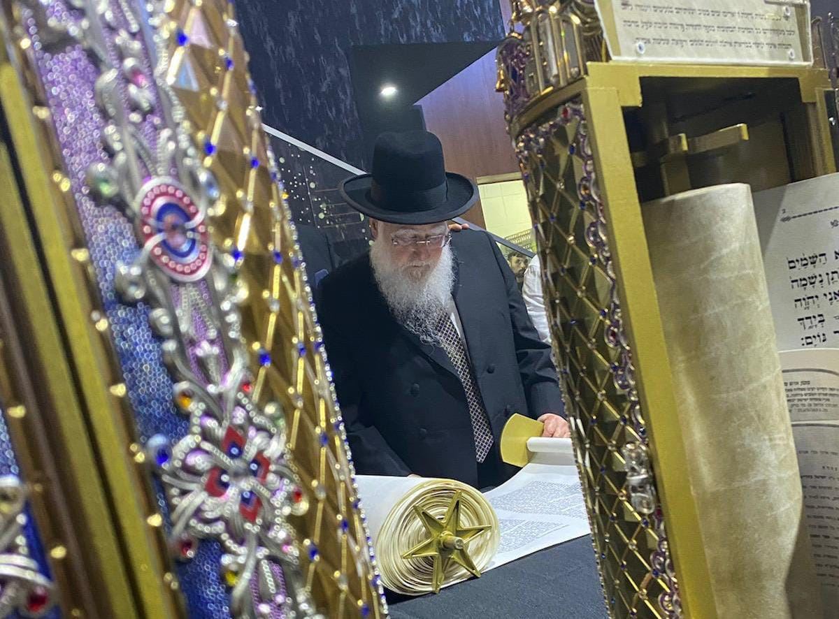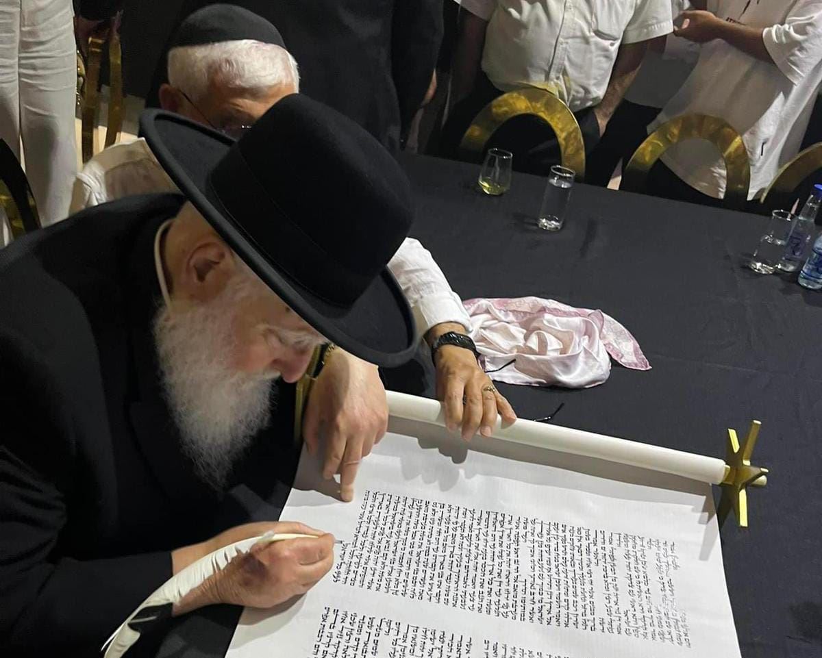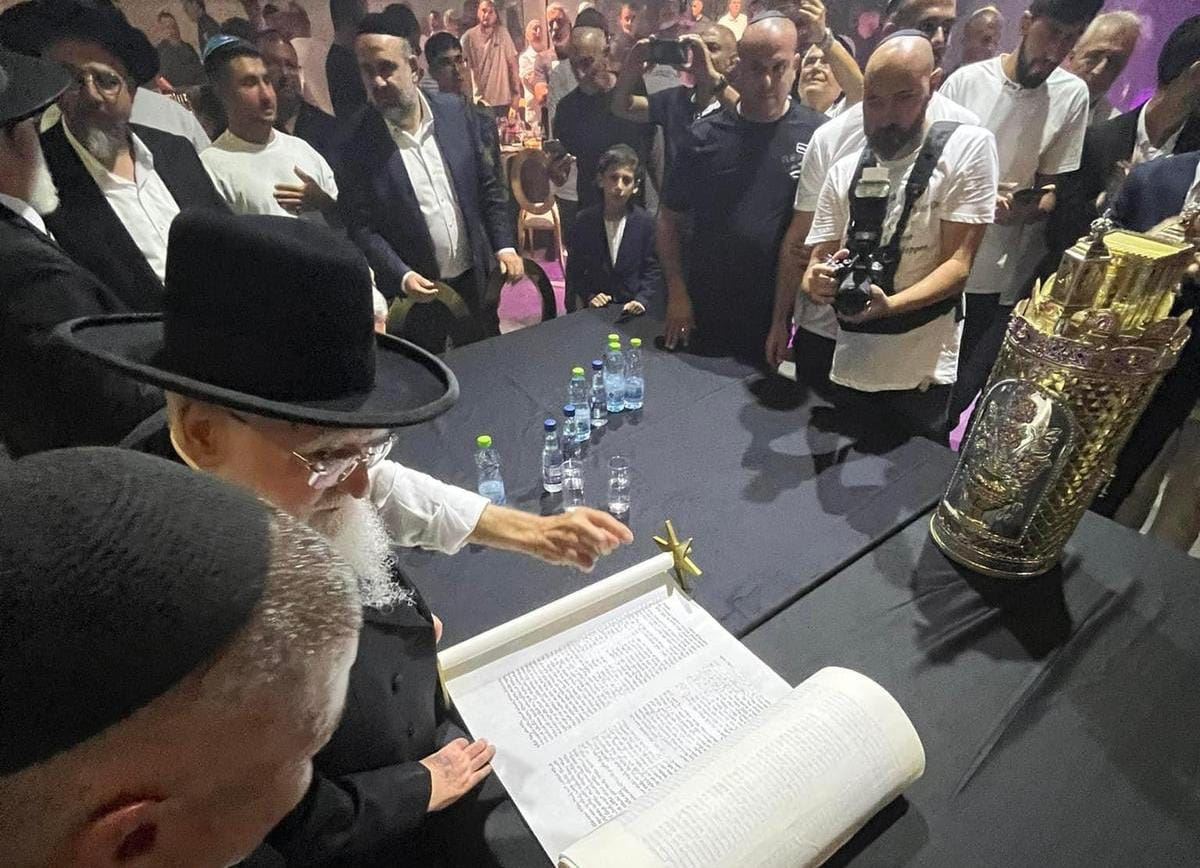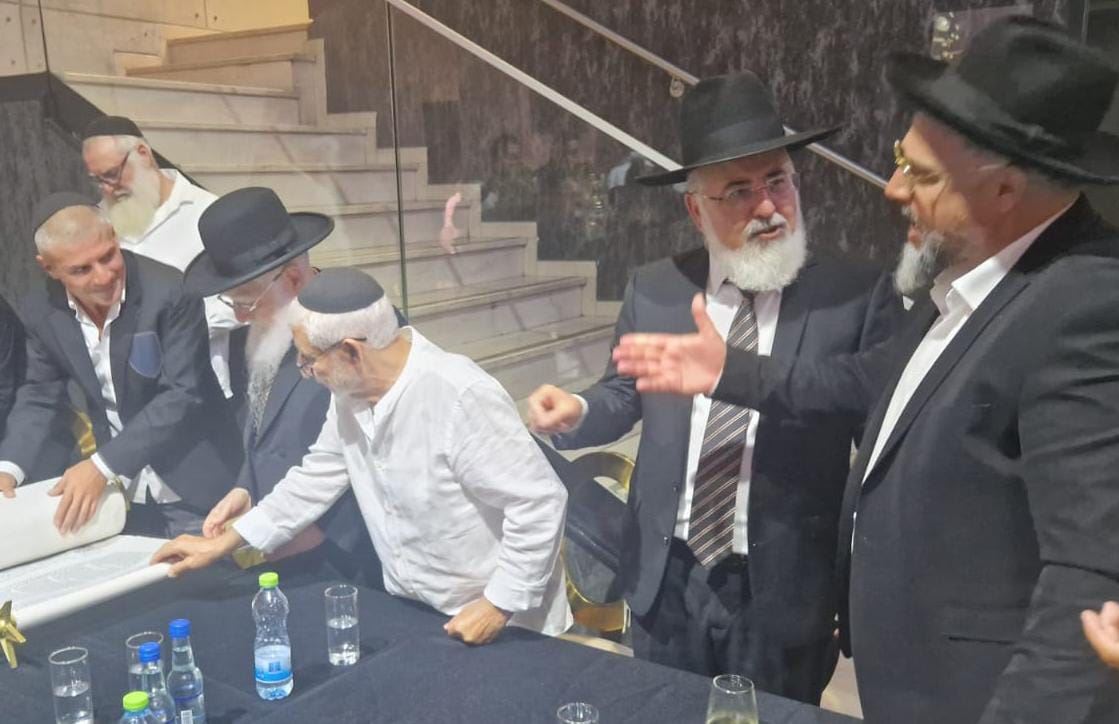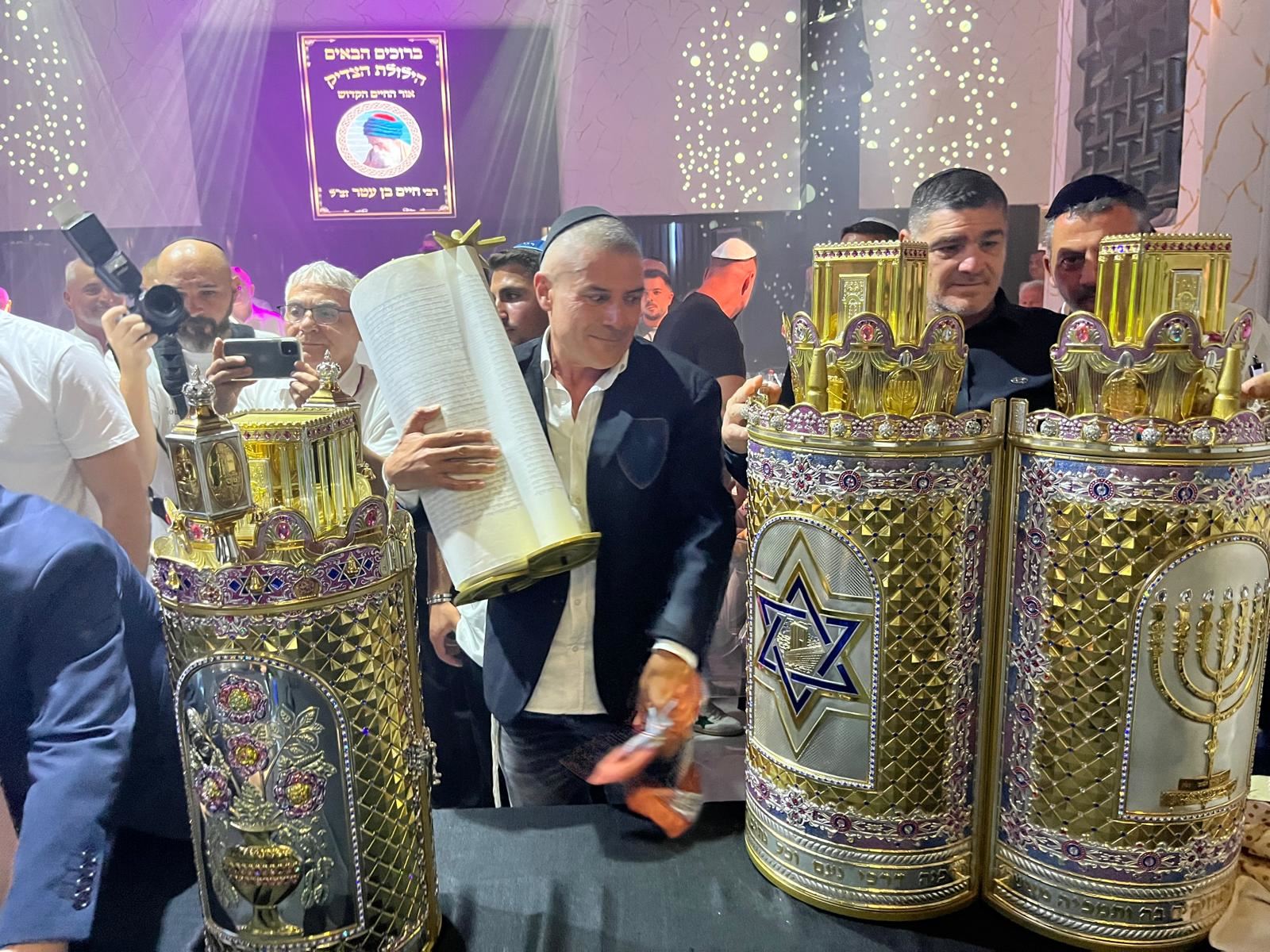 הרב חיים פינטו בהכנסת ספר התורה. מ' מיכאלי