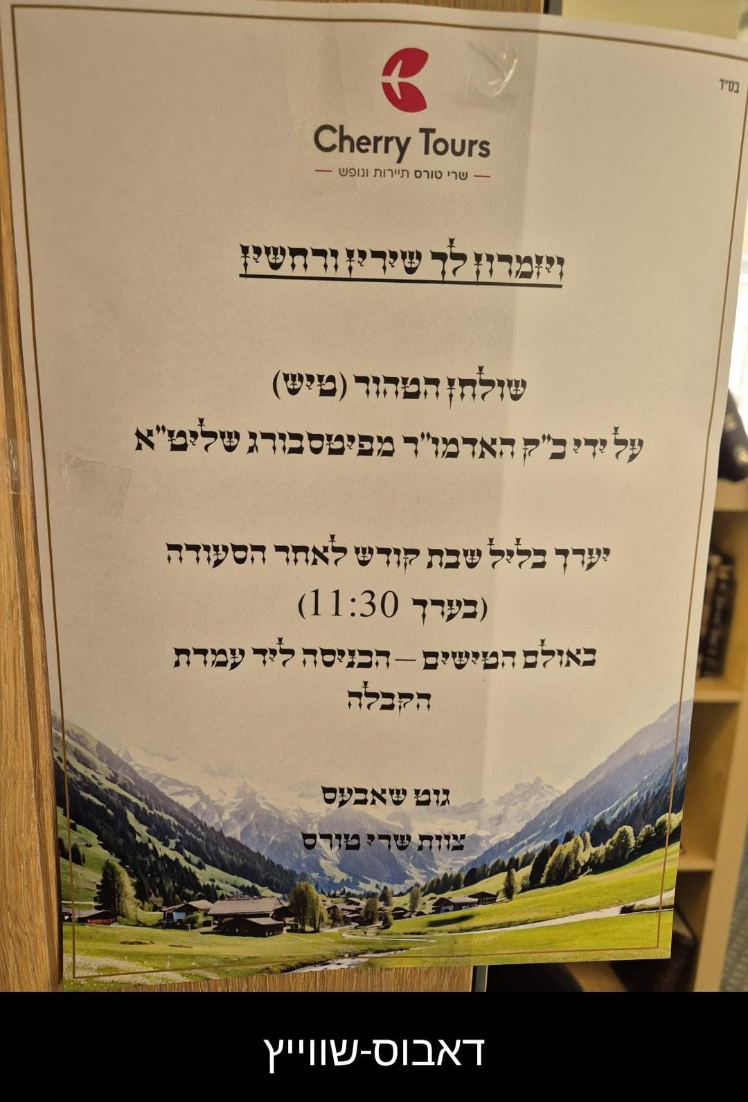 בשבת יערוך האדמו"ר את שולחנו בבית המלון "שרי".