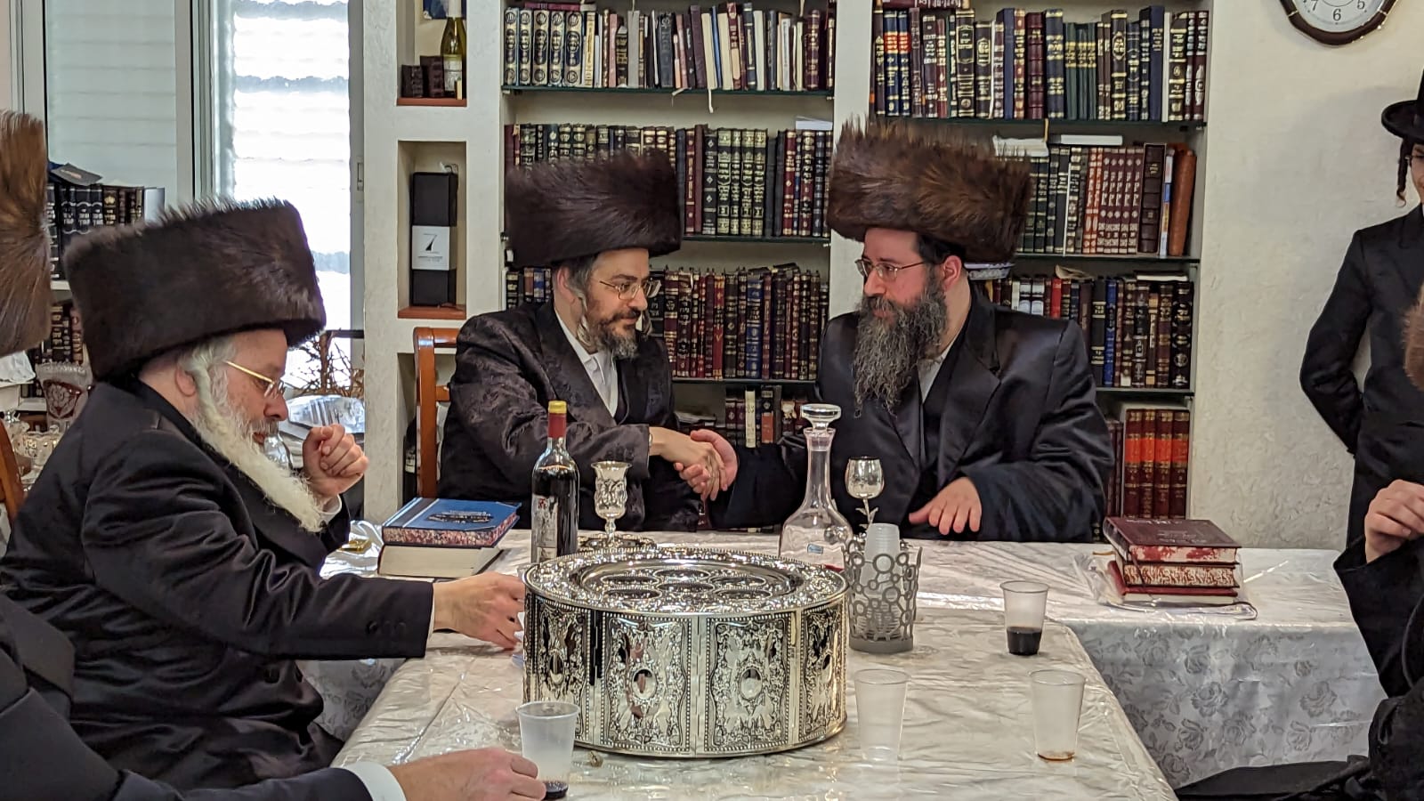 בסיום המעמד נפרדו האדמו"רים בברכת חג שמח.