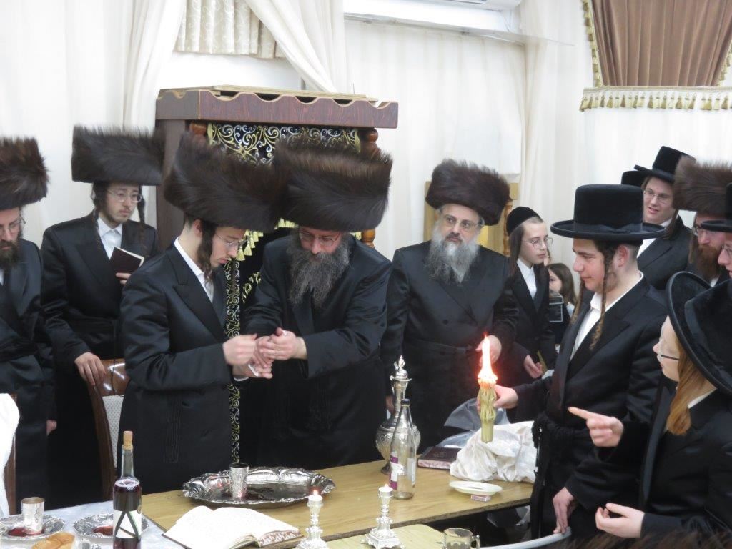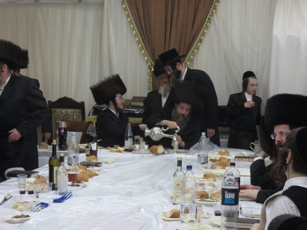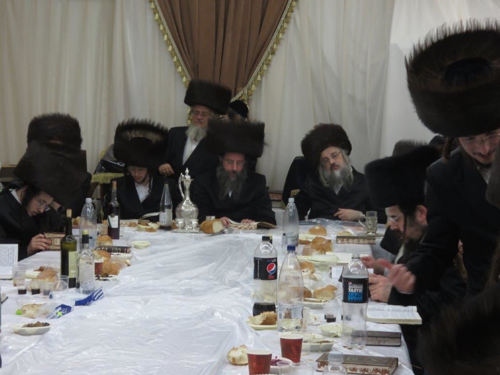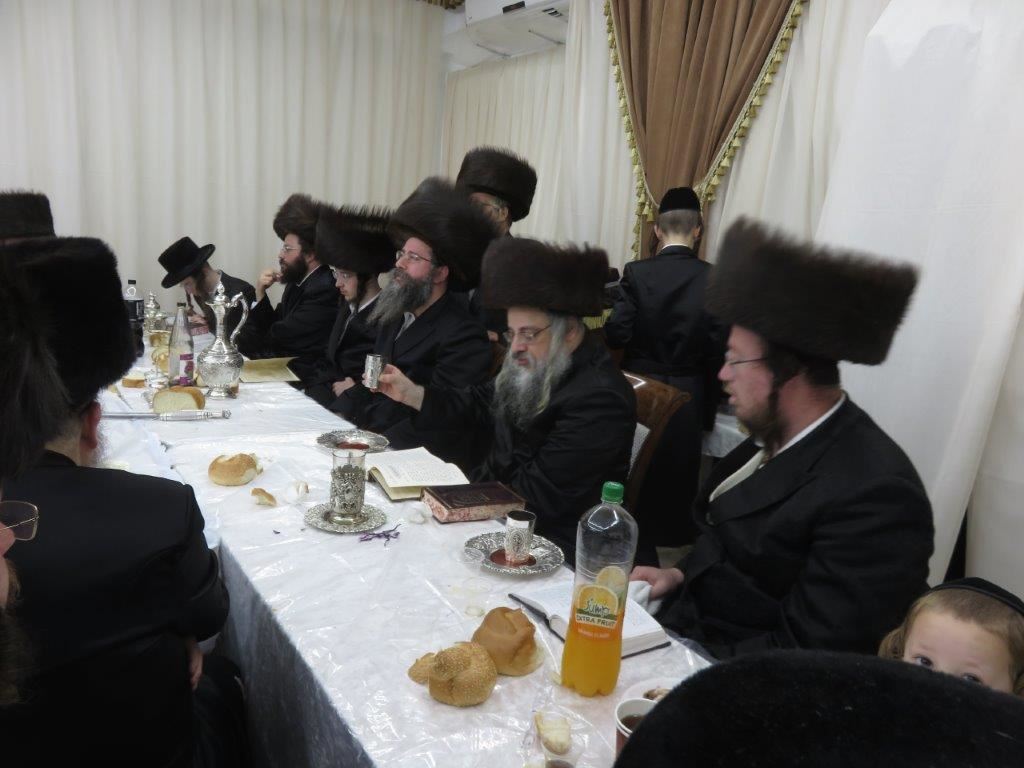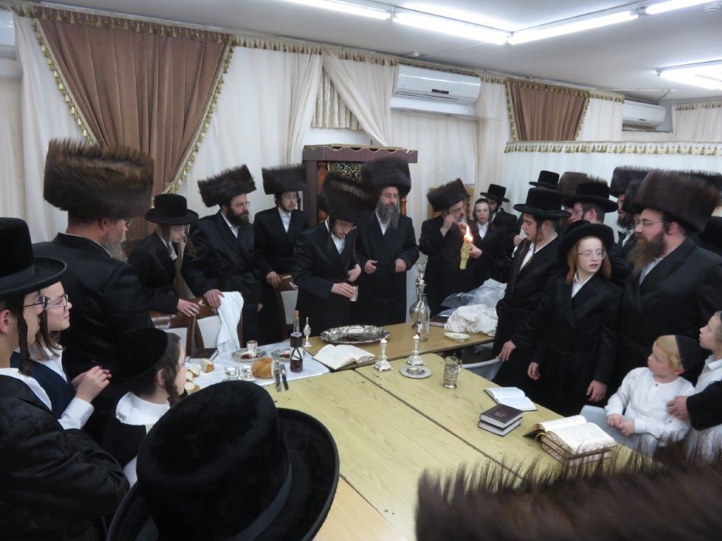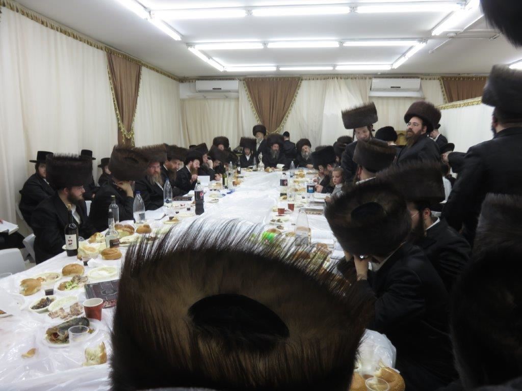 את התפילות ועריכת השולחן ערכו במרחב המוגן בישיבת טשארנאביל. בליל שבת התקיים הטיש במעמד הסבא כ"ק האדמו"ר מביאלה פשיסחא. כך שאר התפילות התקיימו במקום, הפתעה לא נעימה היתה לאורחים שהגיעו מחוץ לעיר שאינם רגילים לכך, כאשר בהכנות לקראת תפילה מנחה של שבת וס"ג, נשמעה האזעקה ולאחריה קולות הבומים החזקים של ירוט הטילים אשר בחסדי שמים מרובים עברה ללא נפגעים כלל.