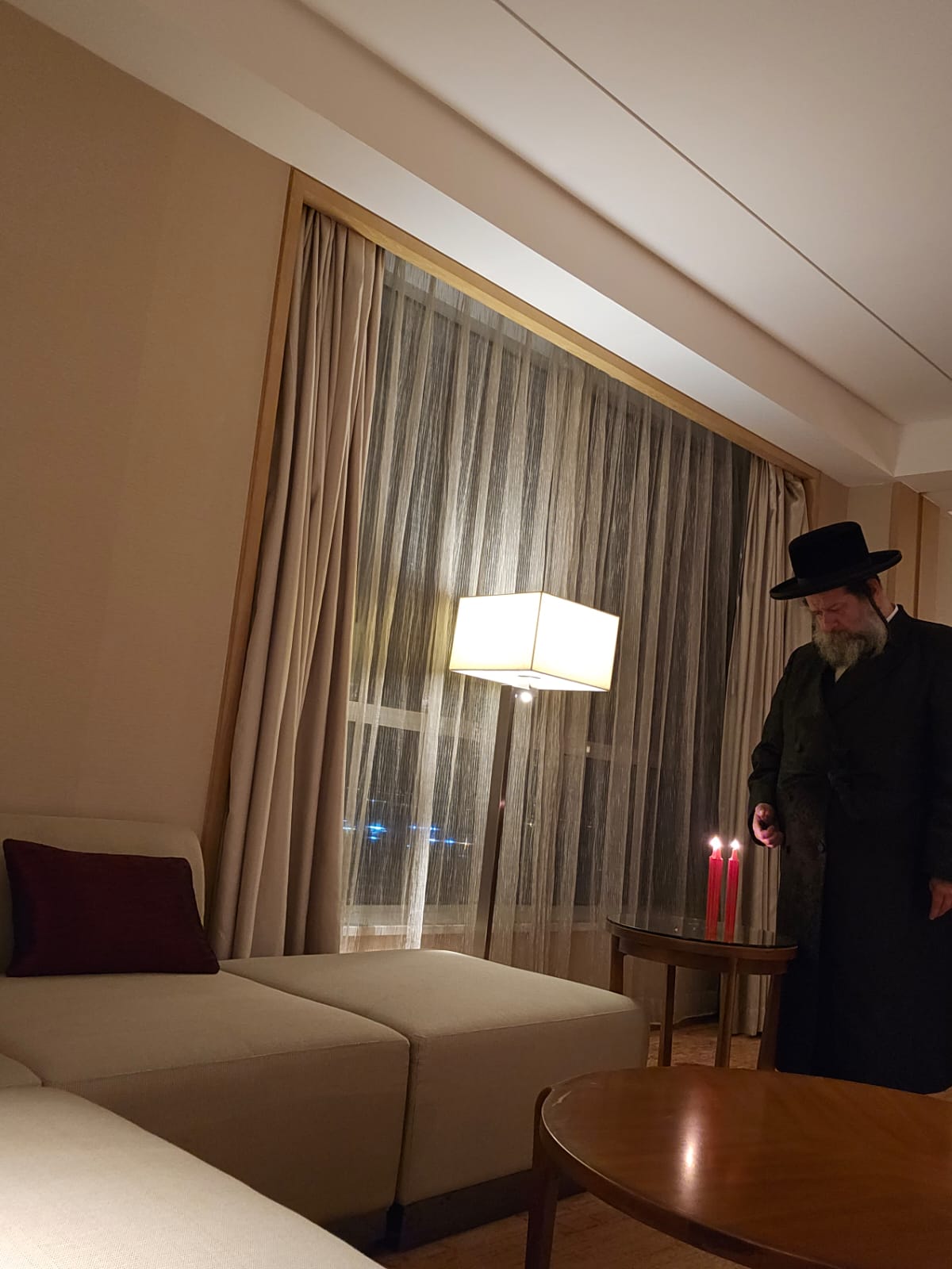 האדמור משאץ השוהה בצינדגאו, סין, בשל תפקידו במערכת הכשרות שבראשותו כבר העלה את הלהבה בהדלקה שעשה בחדרו במלון. צפו