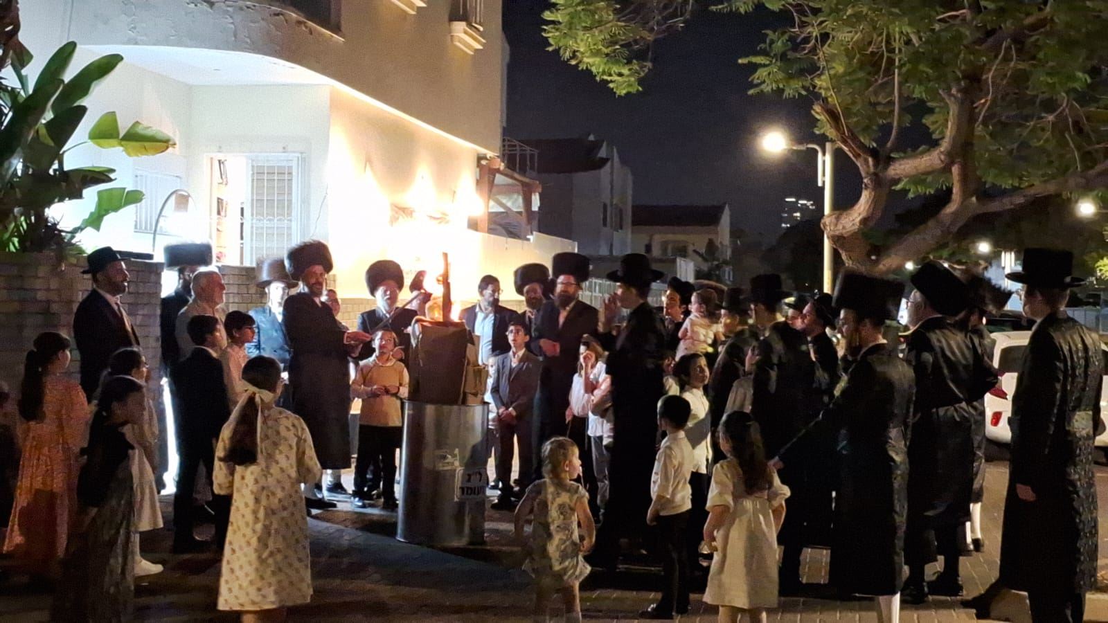 ציבור ענק מתושבי הרובע השתתף בהדלקה שנערכה בראשות הגר"ב הגר רב דקהל יראים ובליווי תזמורת.