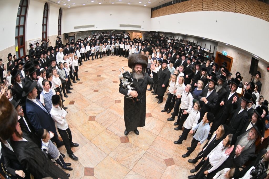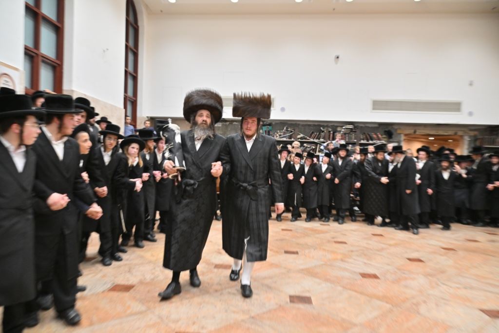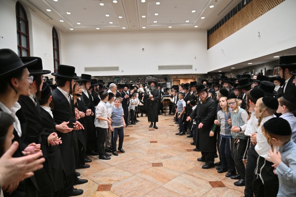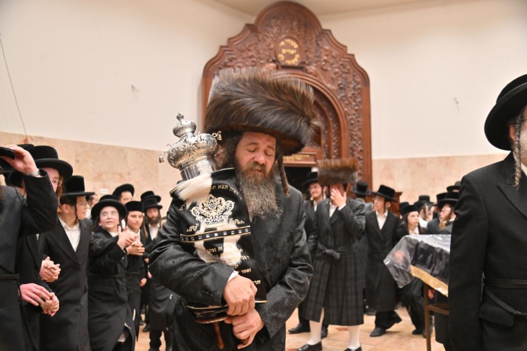 עם הגיעה התהלוכה להיכל בית המדרש החלו מעגלי ריקודים ענקיים לכבודה של תורה במשך שעה ארוכה. רגעים מרגשים נרשמו כשכ"ק האדמו"ר שליט"א רקד במשך זמן ממושך יחד עם הילדים היתומים, בניו של הרב יענקוביץ זצ"ל כשעין לא נותרה יבשה.