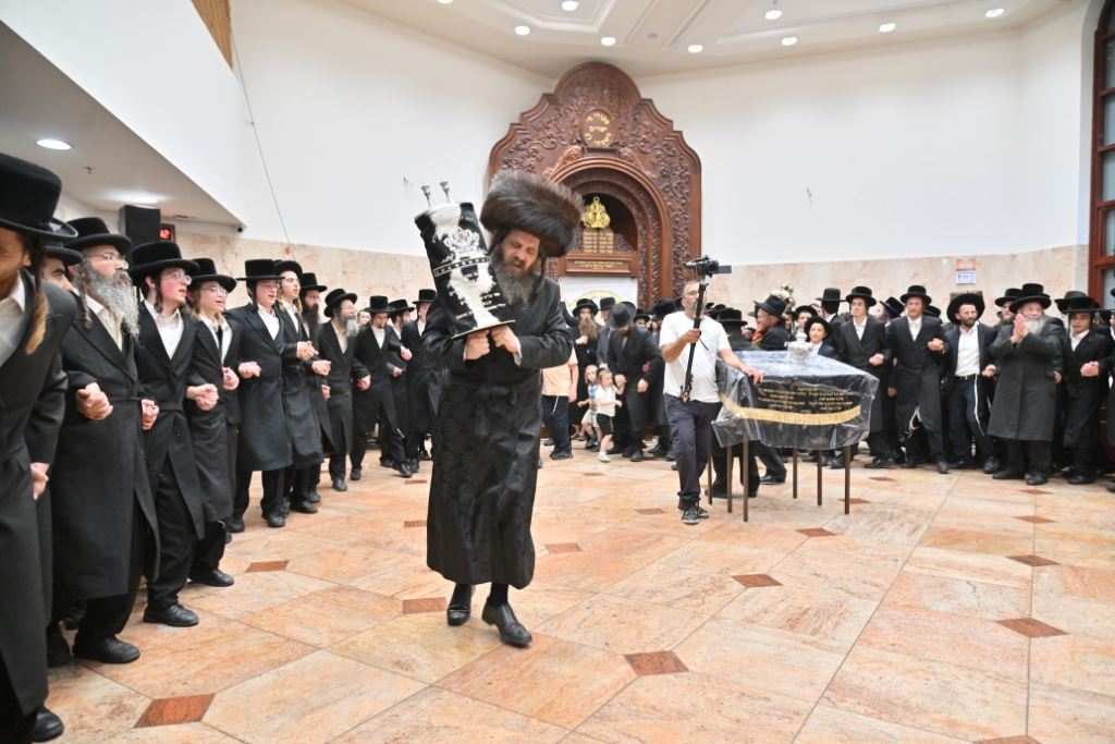 בתום מעמד כתיבת האותיות האחרונות בספר התורה ע"י כ"ק האדמו"ר שליט"א, יצא ספר התורה לרחובה של עיר כשהוא נישא בידי כ"ק האדמו"ר שליט"א, כשבתהלוכה נוטלים חלק לכבודה של תורה מאות רבות של תושבי אשדוד החרדית בכלל וחסידי פיטסבורג בפרט.
