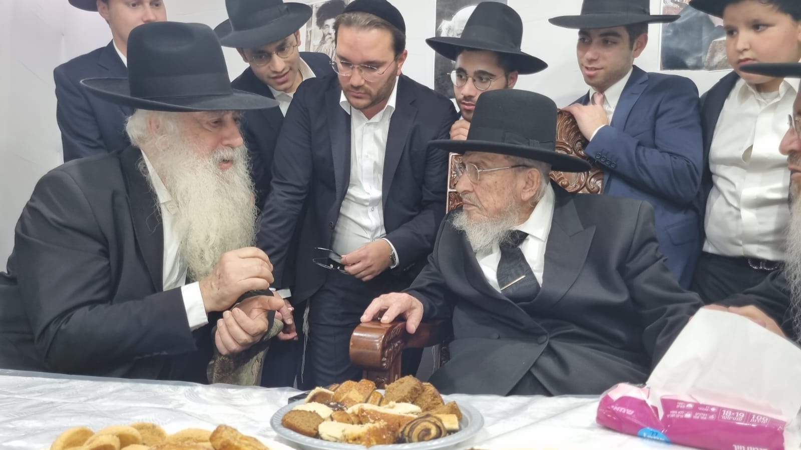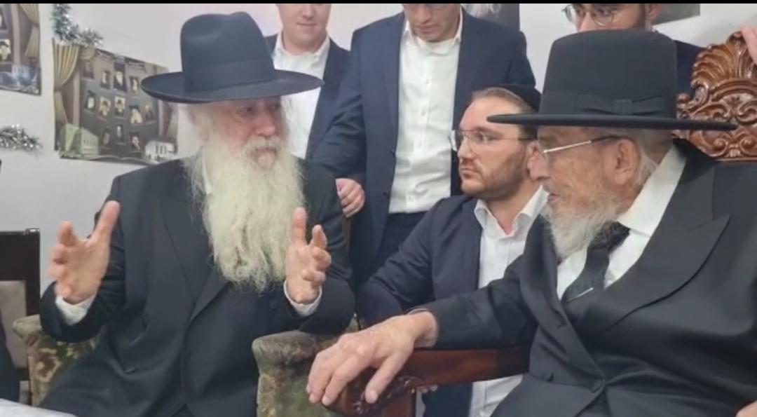 נשיא ממלכת התורה 'אורות חיים ומשה' העומד בנשיאות המוסדות ברובע ג' בעיר עלה לביקור חג אצל הגאון הגדול רבי מרדכי אזרחי ר"י "עטרת ישראל" וחבר מועצת גדולי התורה בסוכתו שבביתו