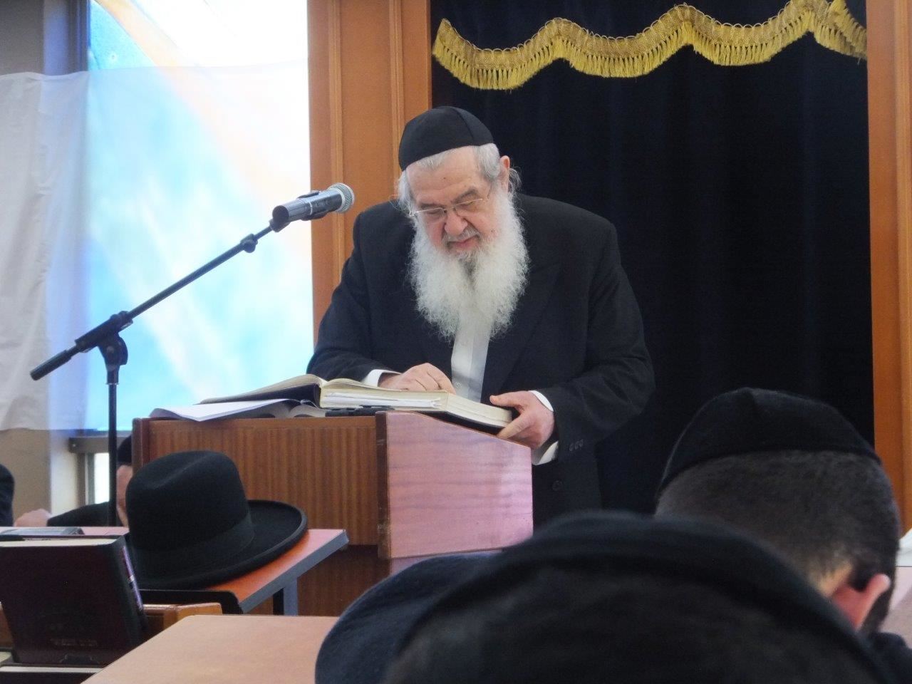 לקראת סיום השיעור, נשא דברי חיזוק והתעוררות במעלת התורה הק'. הזכיר את התפילה הנאמרת בכל יום לאחר תפילת יח' ביהי רצון... ותן חלקנו בתורתך לעשות חוקי רצונך ולכא' מה הקשר? אלא כאשר עם ישראל גלה, נסתמו חוכמת התורה בגלות והפסידו הרבה מחוכמת התורה ולכן כשמתפללים לבנין בית המקדש, מתפללים שגם יחזור לנו חוכמת התורה שהפסדנו בגלות.
