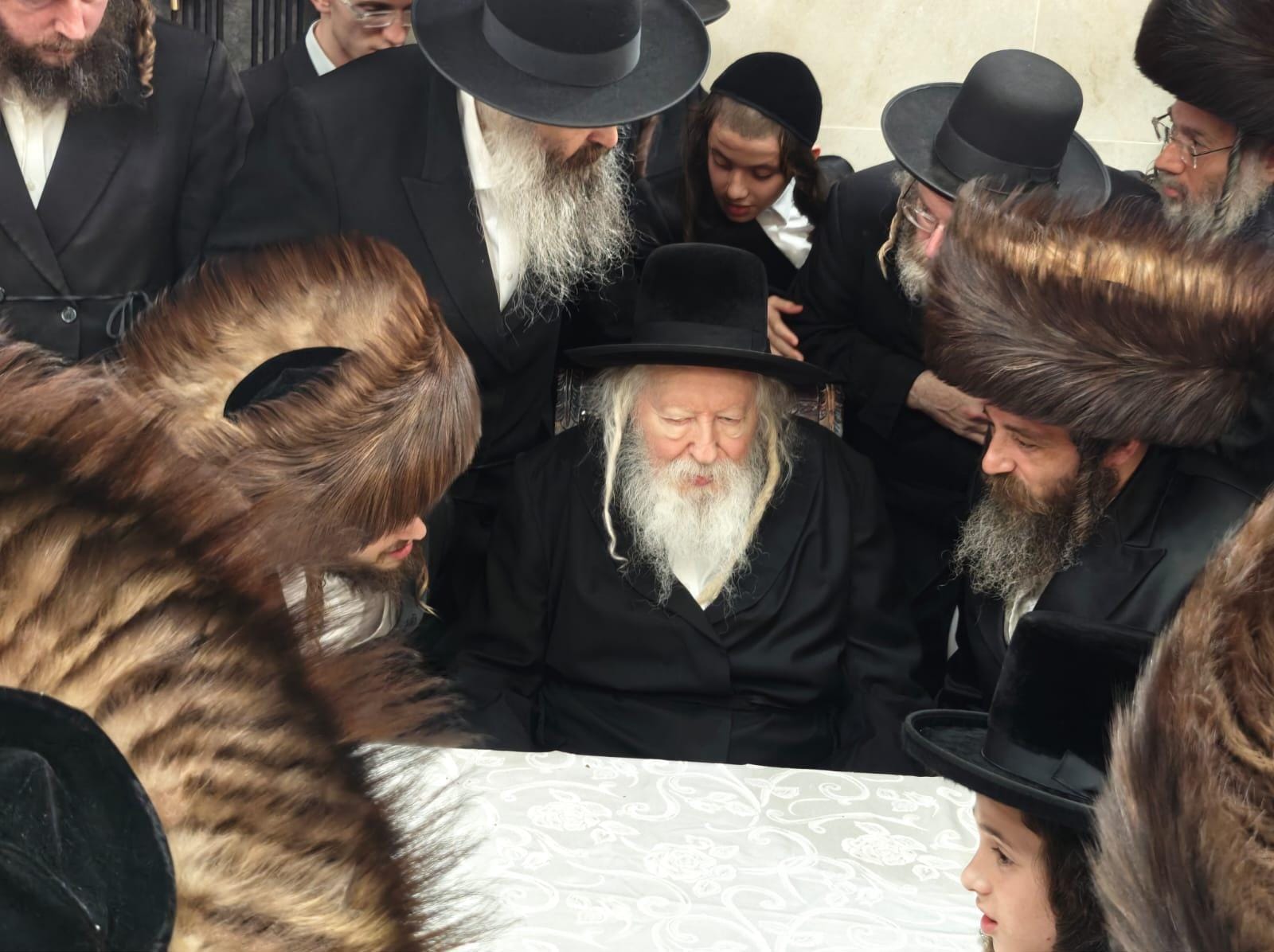האדמו"ר מגור בשבע ברכות לבת האדמו"ר מפיטסבורג. צילום: פיני וינברג