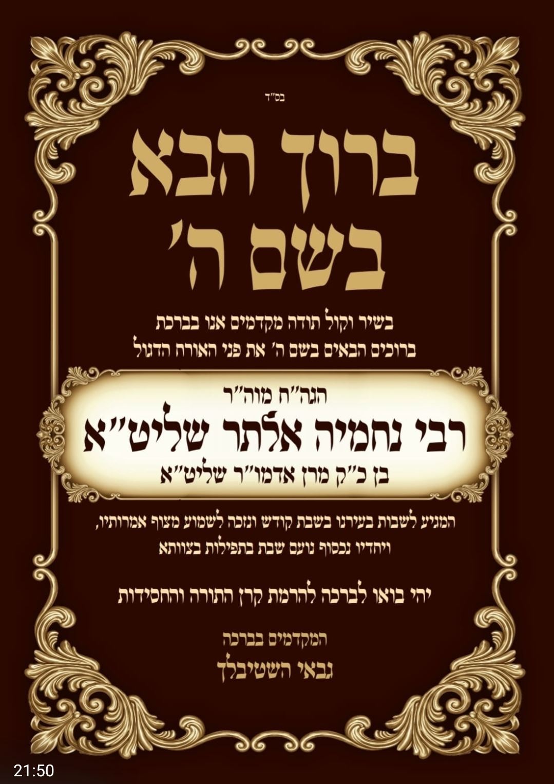 בנו האשדודי של האדמו"ר מגור, במסע חיזוק לגולה: הרה"ג רבי נחמיה אלתר שליט"א, בנו של האדמו"ר מגור שליט"א וראש ישיבות גור בעיר, יצא בימים האחרונים למסע חיזוק לקהילות גור בגולה, באירופה ובארה"ב.