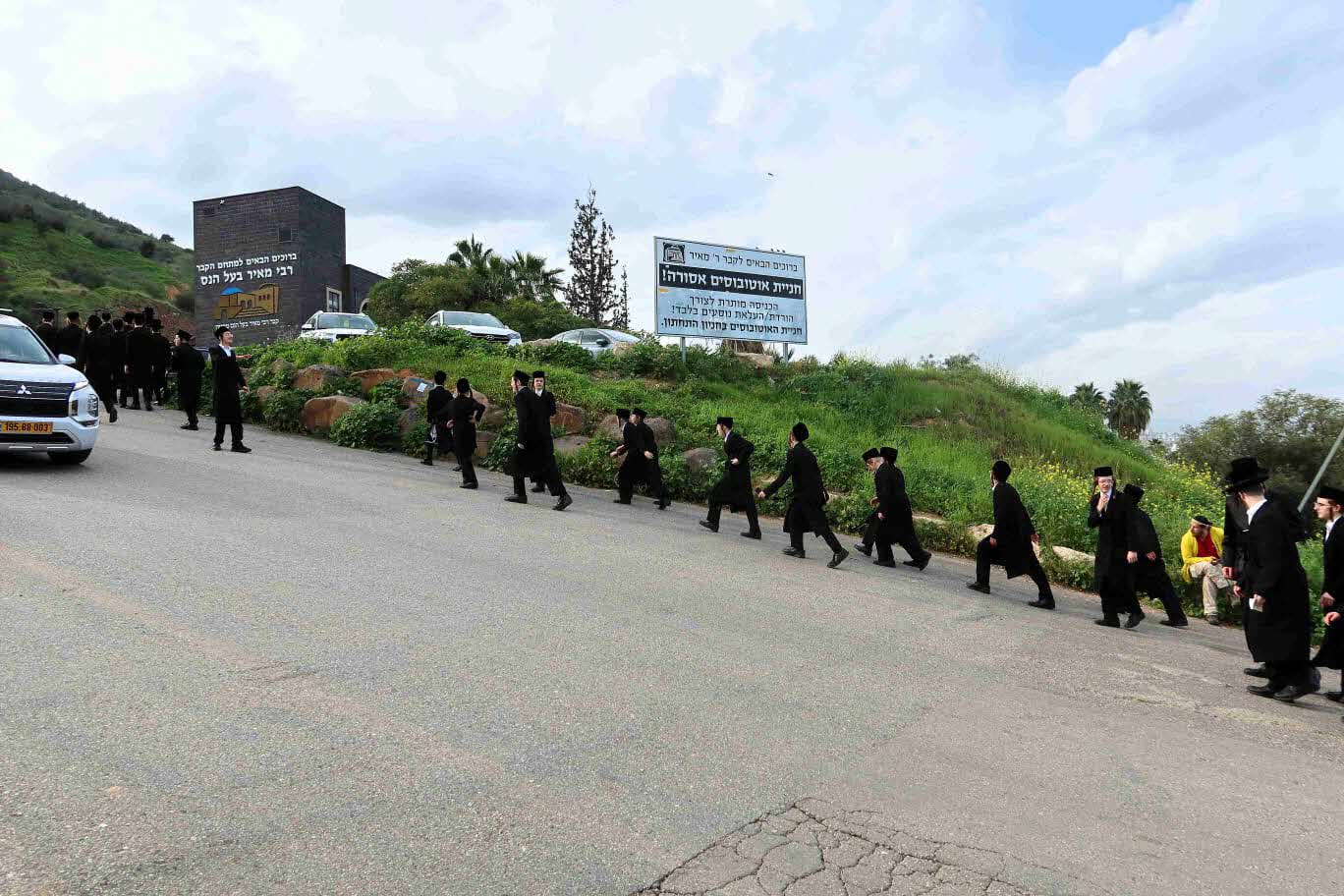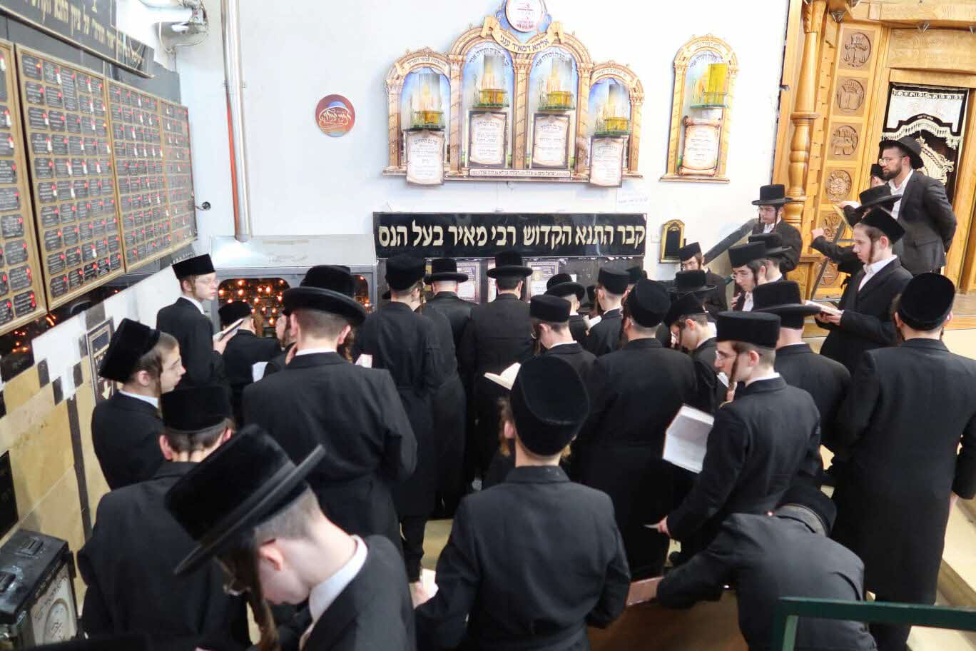 בשעות הצהריים יצאו תלמידי הישיבה לתפילת מנחה ופרקי תהלים בציון הק' של רבי מאיר בעל הנס, שנאמרו בהתעוררות רבתי למען רפואתו השלימה של מרן אדמו"ר שליט"א.