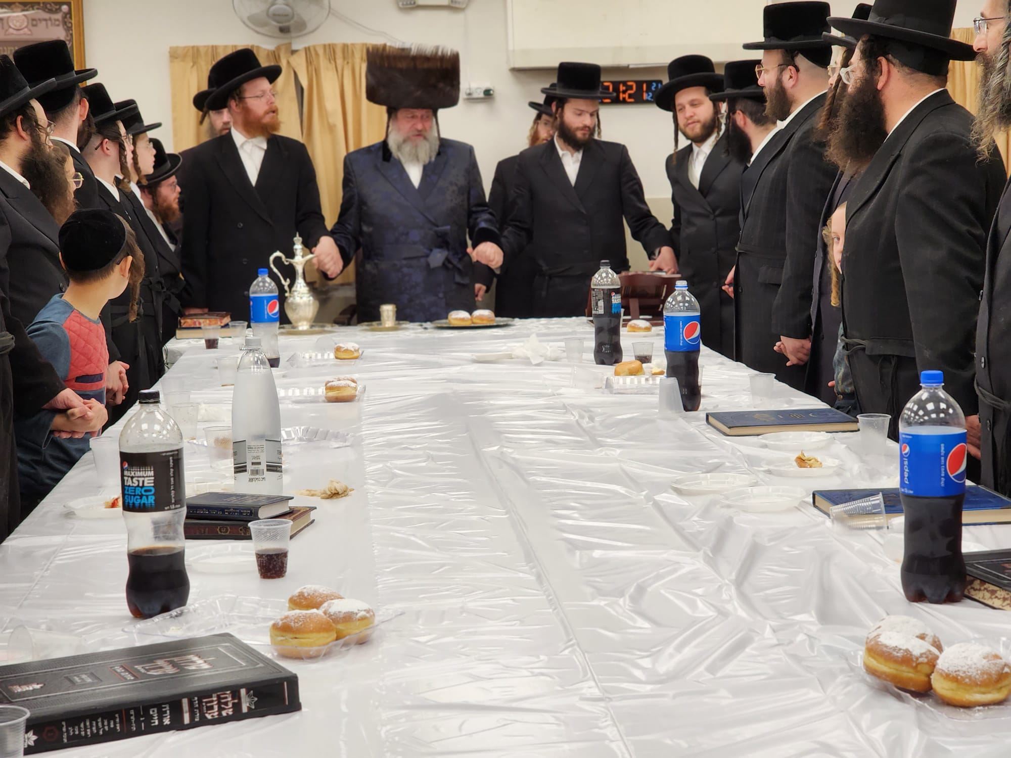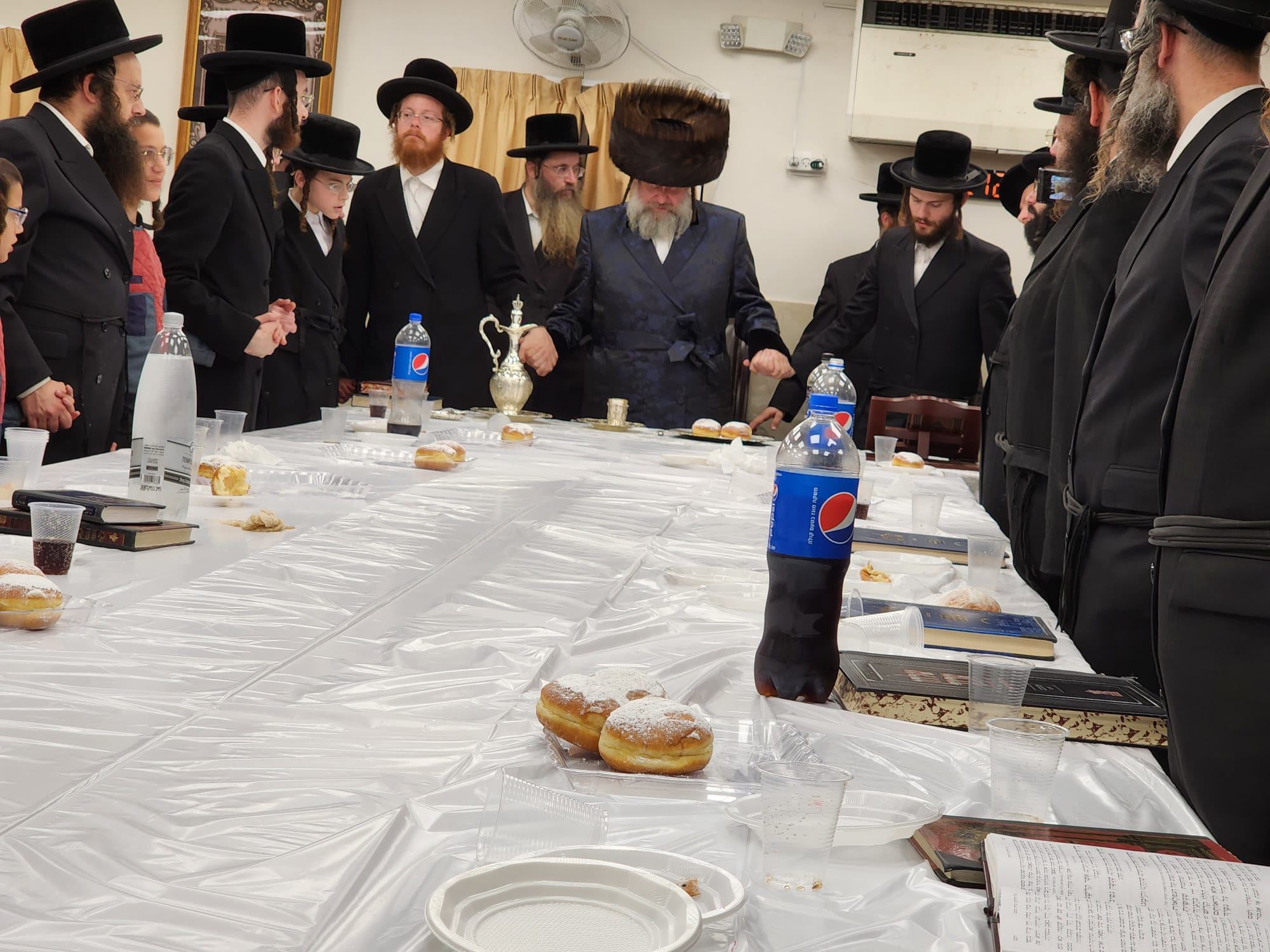 לאחר הדלקת הנרות השמיע האדמו"ר מדברות קדשו, ואף חילק מעות חנוכה לצד אמירת המזמורים כנהוג.
