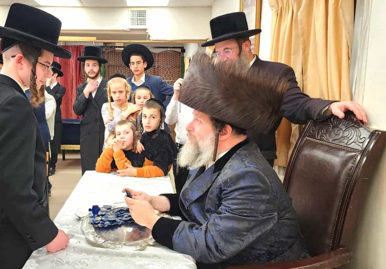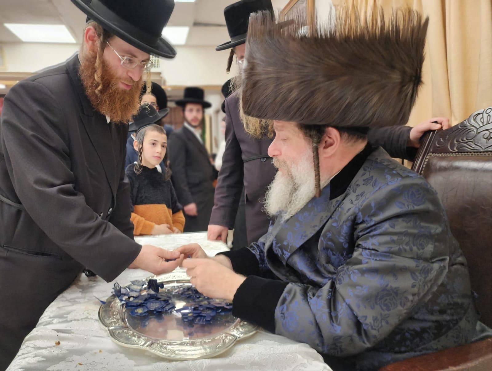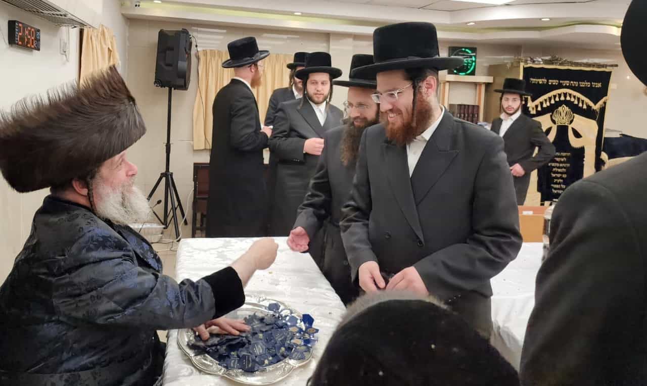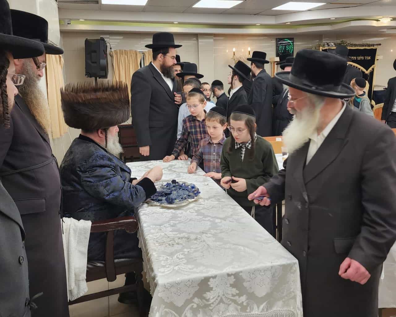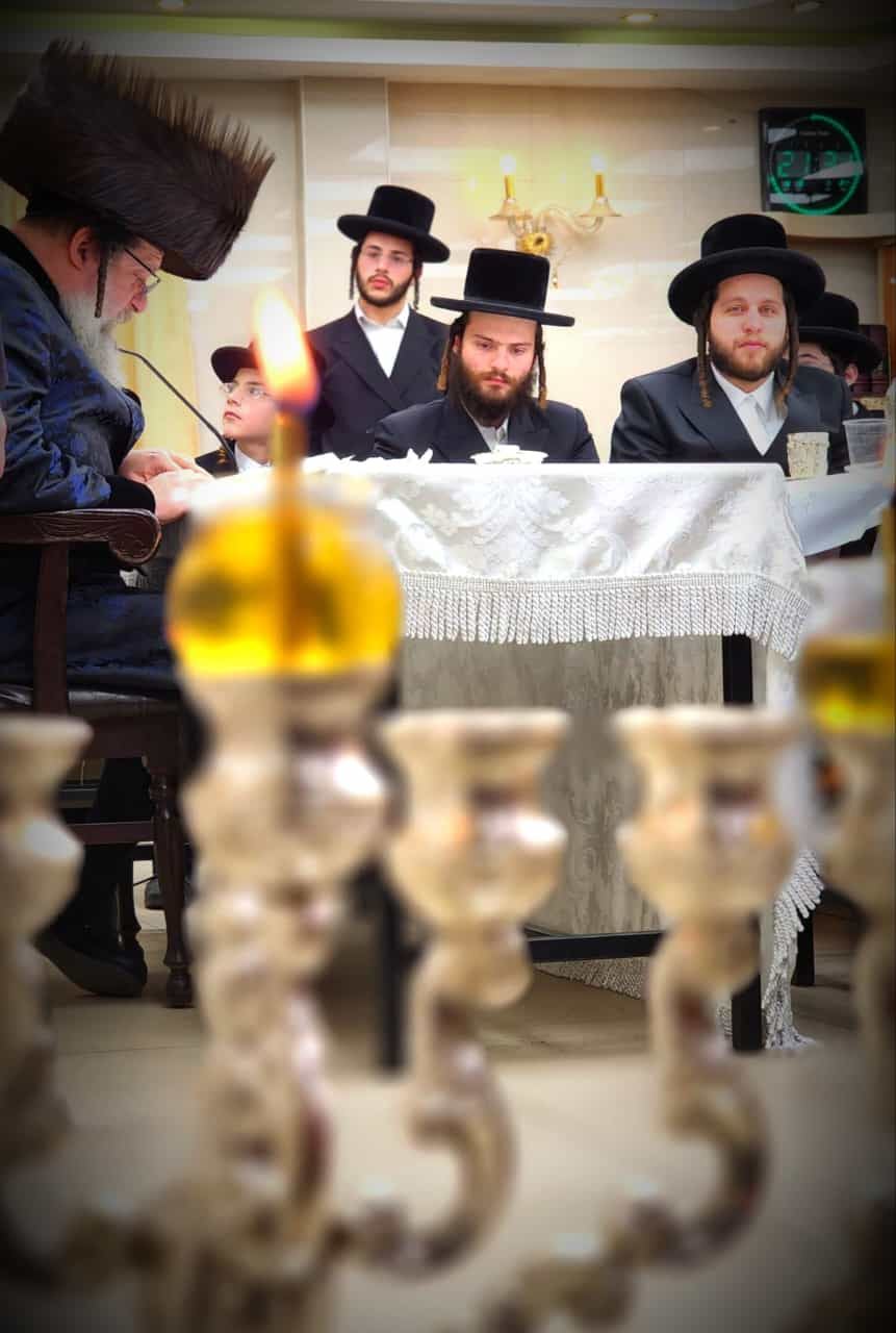 רבים בהדלקת הנרות בחצר שאץ. לאחר הדלקת הנרות השמיע האדמו"ר מדברות קדשו, ואף חילק מעות חנוכה לצד אמירת המזמורים כנהוג. צפו