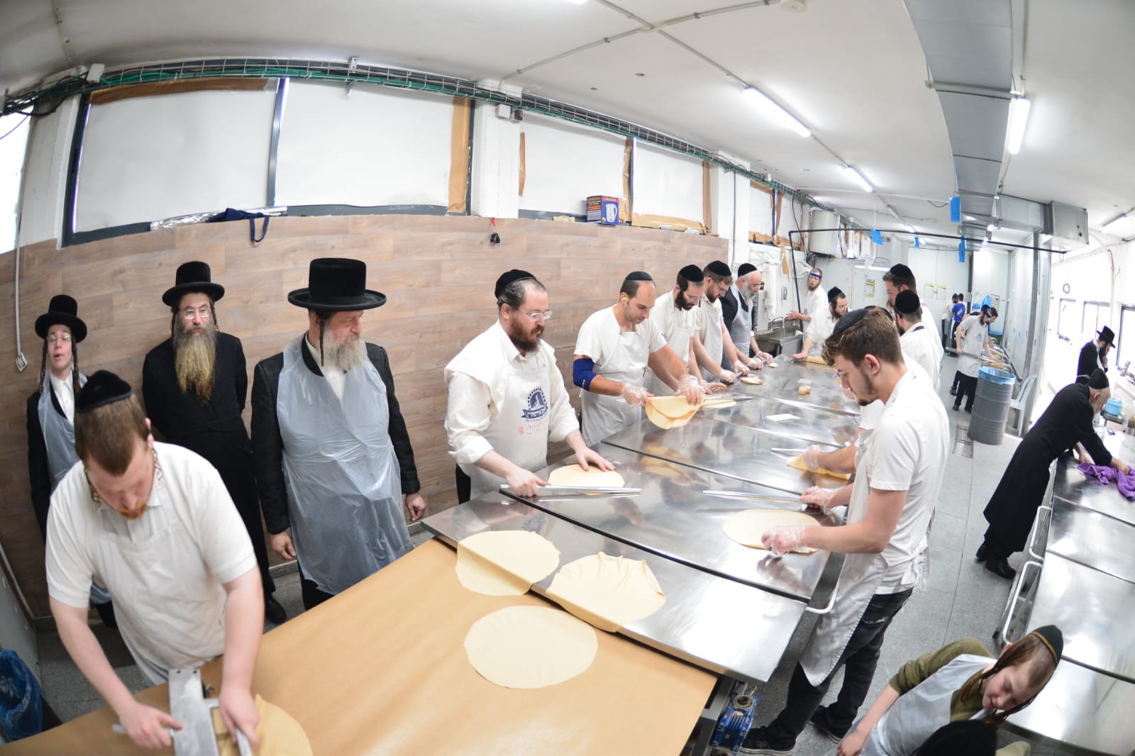 כ"ק מרן האדמו"ר משאץ אשדוד שליט"א באפיית המצות הבוקר במאפיית אירנשטיין. באשדוד. צילום : יוסי לוי