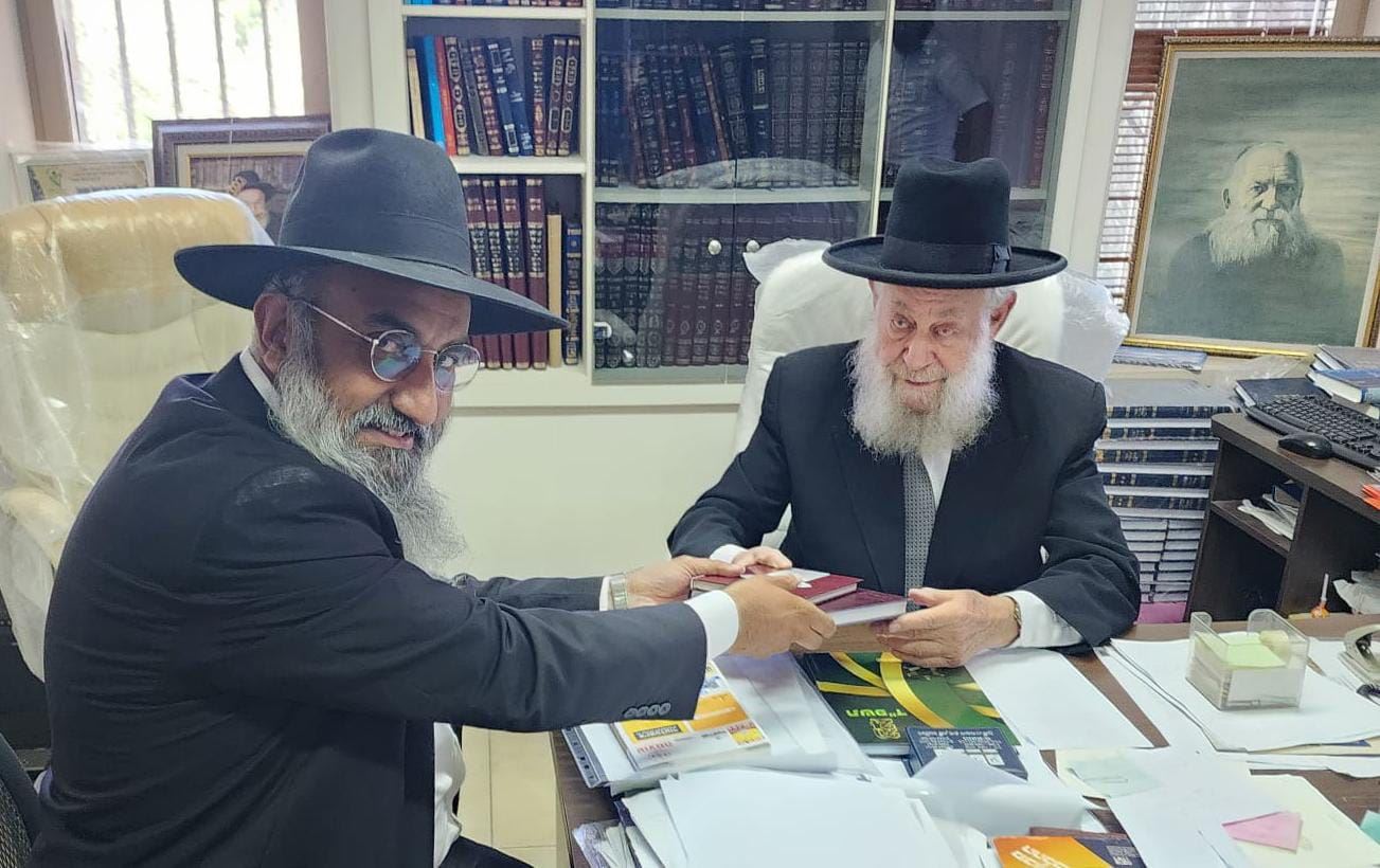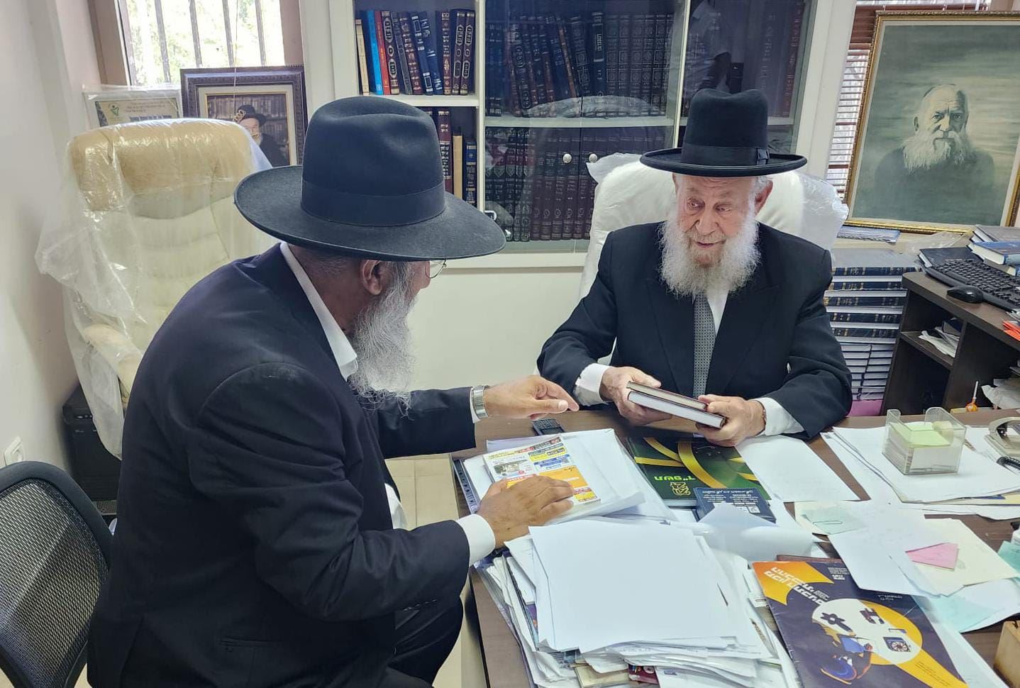 כמו כן נכנס להגאון הגדול מרן הגרב"ד פוברסקי שליט"א ראש ישיבת פונוביז', והעביר לו את הספר ומסר ברכת פרישת שלום לראש הישיבה שליט"א בשם הגר"מ פרץ שליט"א.