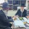 בתחילה פקד את כבוד המרא דאתרא הרה"ג ר' יוסף שיינין שליט"א בלשכתו ששמח לקבל את פניו, הגר"י שיינין עיין מעט בספרים וביקש להעביר פרישת שלום להגאון רבי מיכאל פרץ שליט"א שידוע שהוא תלמיד חכם גדול.