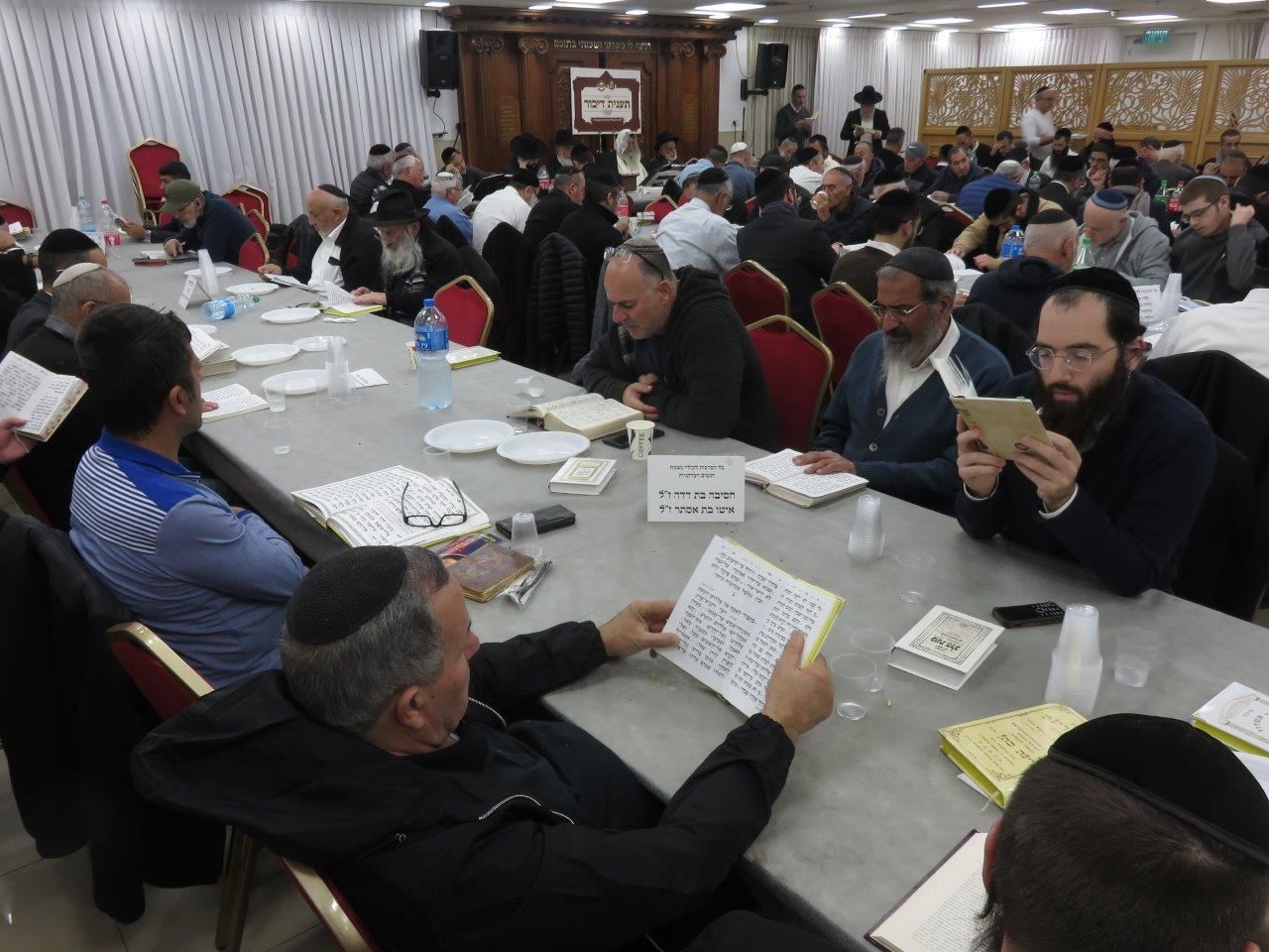 בין הבאים הרבים היו רבנים חשובים וקהל רחב שהגיע אף ממרחק כדי להשתתף במעמד קדוש זה של חיזוק בימי השובבי"ם, הגבאי המסור וראש הוועד ה"ה משה מרציאנו דאג לכיבוד קל בשפע במשך כל היום, שהוגש בפני המשתתפים כשבראש הלומדים ישב הרה"ג ר' מאיר אבוחצירא כשהוא עטור בתפילין שנשא דברי תורה והתעוררות מידי פעם במעלת התענית דיבור וציין כי 'כשאדם שומר על פיו ולשונו, זוכה לדברים הרבה כמובא בספרים הקדושים' וכן ביאורים על פסוקים מפרקי התהילים.