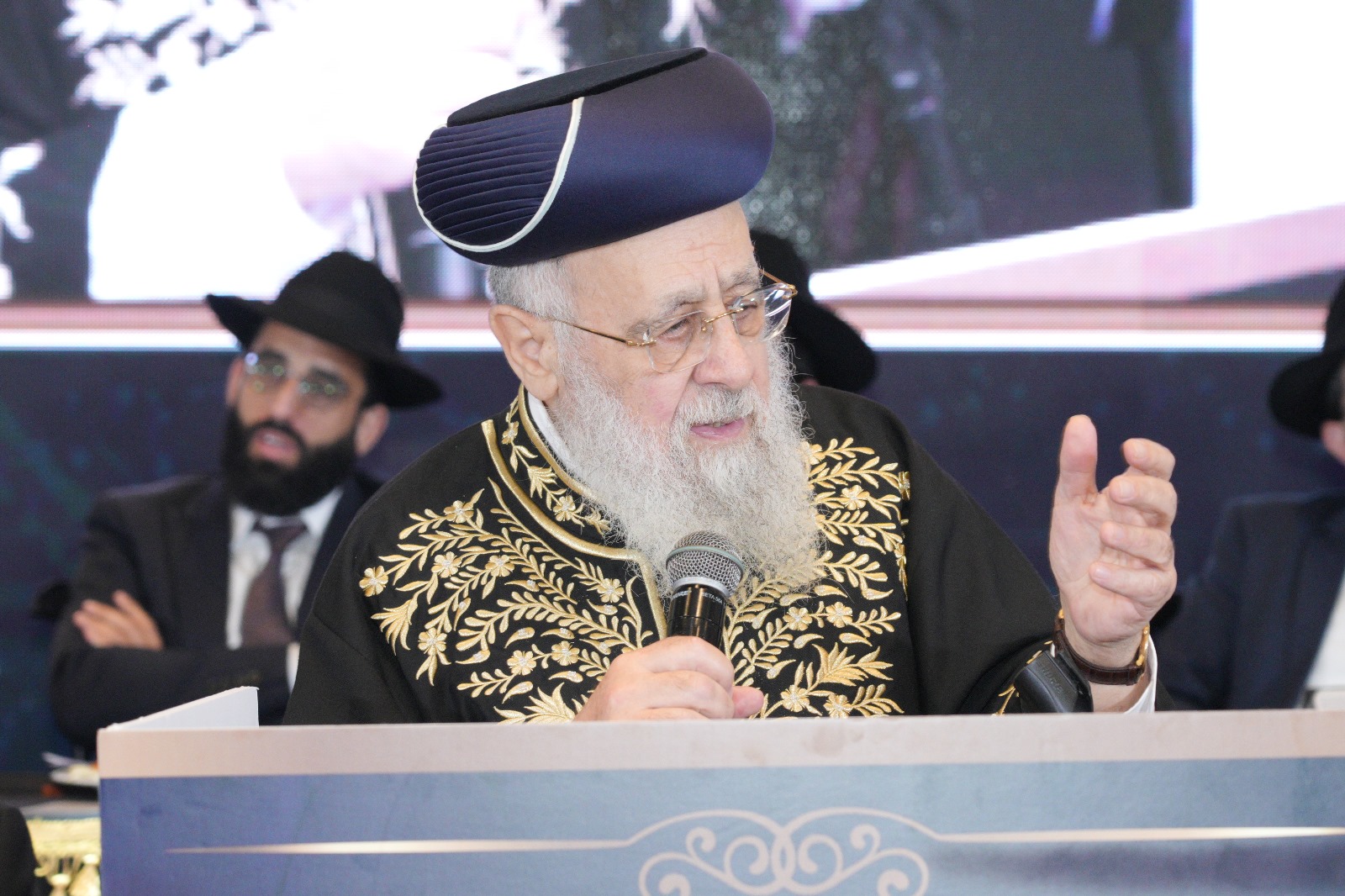 בשיאו של המעמד נכנס הראשון לציון ונשיא מועצת חכמי התורה הגאון האדיר פוסק הדור מרן רבינו יצחק יוסף שליט"א בעל ה'ילקוט יוסף' תוך שהוא מתקבל בשירת "ימים על ימי מלך תוסיף". הראשל"צ במשאו העלה על נס את מפעלותיו של הגר"מ מויאל זה עשרות בשנים, סיפר על ההתחלה בקבוצות תלמידים קטנות ועד לאימפריית התורה העצומה כיום. עוד הוסיף הראשל"צ כי על הרב מויאל נאמר הפסוק "טוב עין הוא יבורך" שעושה הכל לשם שמיים. הרב דיבר בשבח החשיבות של פיתוח מוסדות התורה ובפרט תלמודי התורה לתינוקות של בית רבן שילמדו תורה בטהרה ובירך את הרב מויאל שחפץ ה' בידו יצלח ובכל אשר יפנה ישכיל ויצליח.