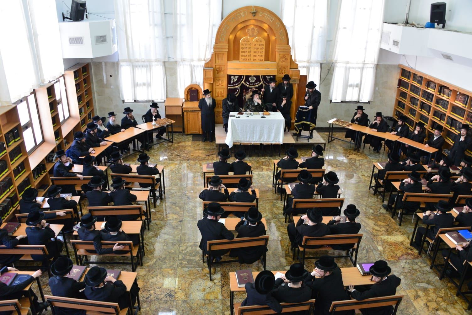 כ"ק האדמו"ר שליט"א נשא שיחה בפני תלמידי הישיבה, כאשר קודם לכן נשמעו דברים מראש הישיבה שליט"א. לאחר מכן התפלל האדמו"ר שליט"א עם הציבור.