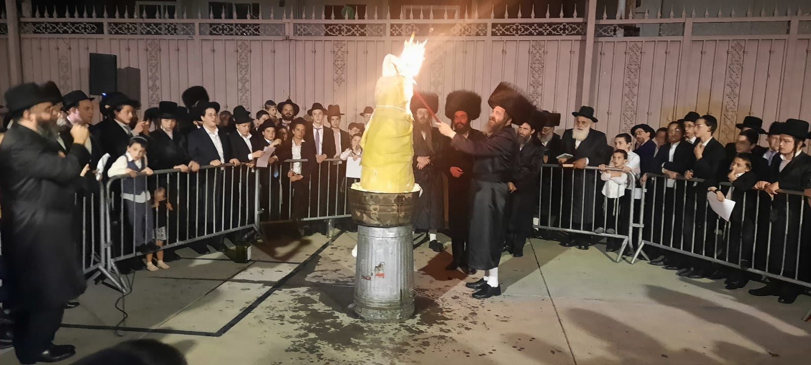 האדמו"ר מפיטסבורג השוהה בימים אלו בלוס אנגל'ס, כמנהג אביו זי"ע, העלה את האש בחצר הת"ת בלוס אנגל'ס