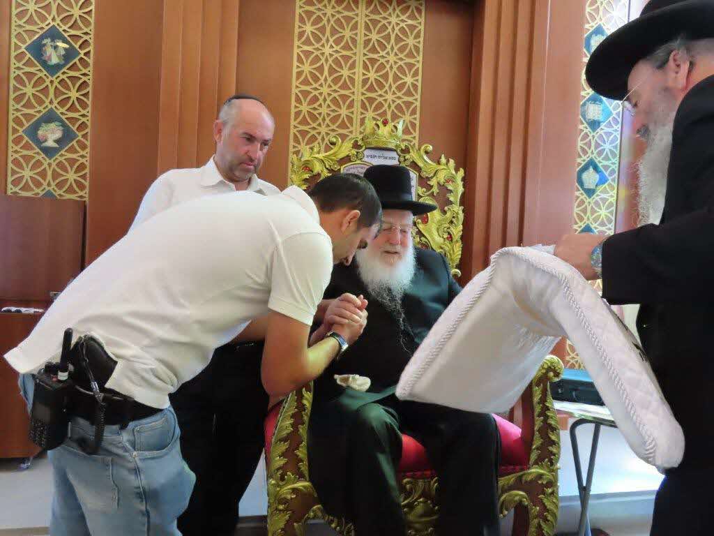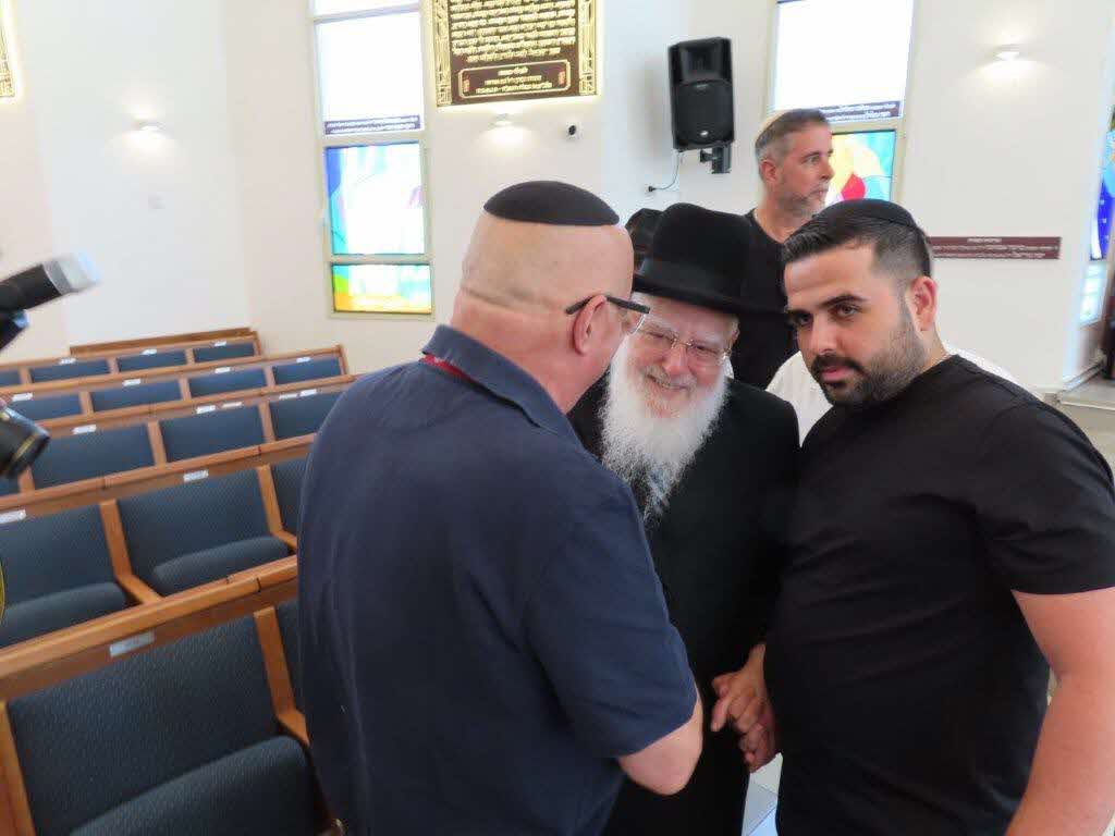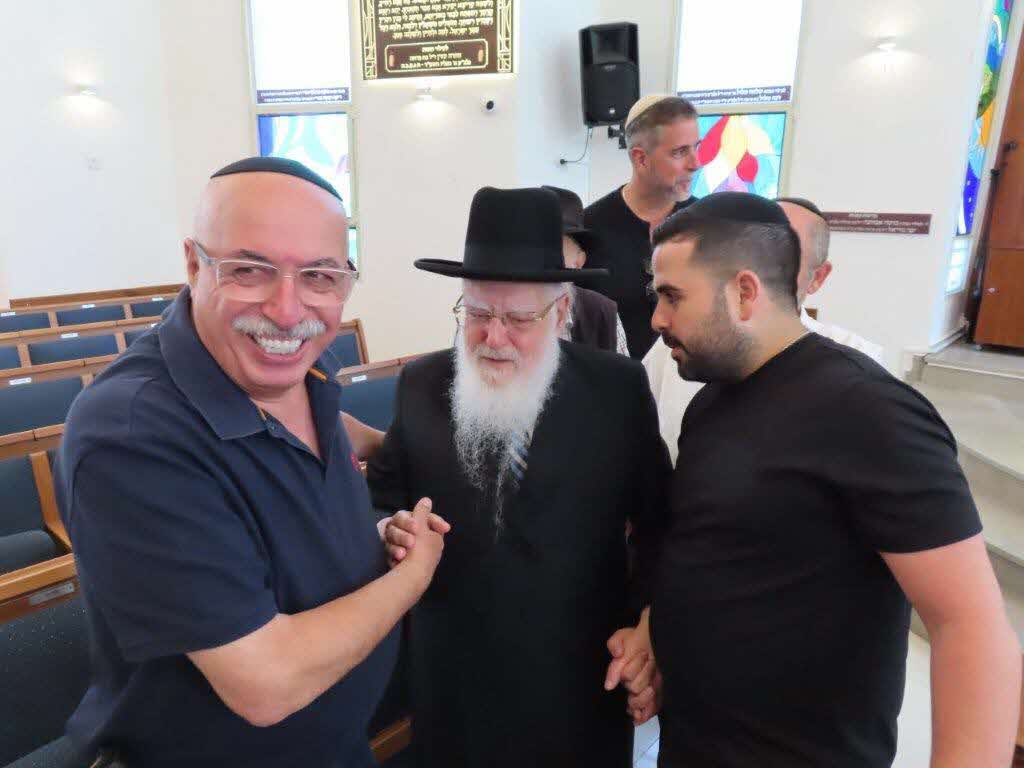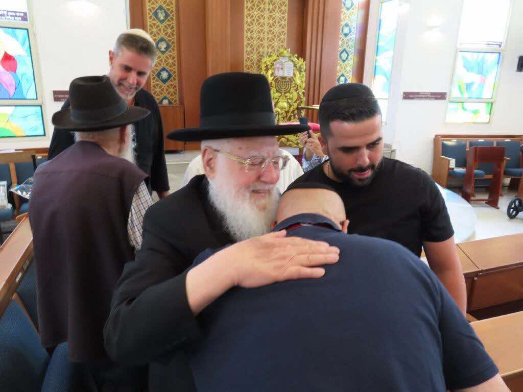 הסנדק הרב הראשי הגה"צ רבי חיים פינטו בירך את החיילים והחטופים לפני הקהל