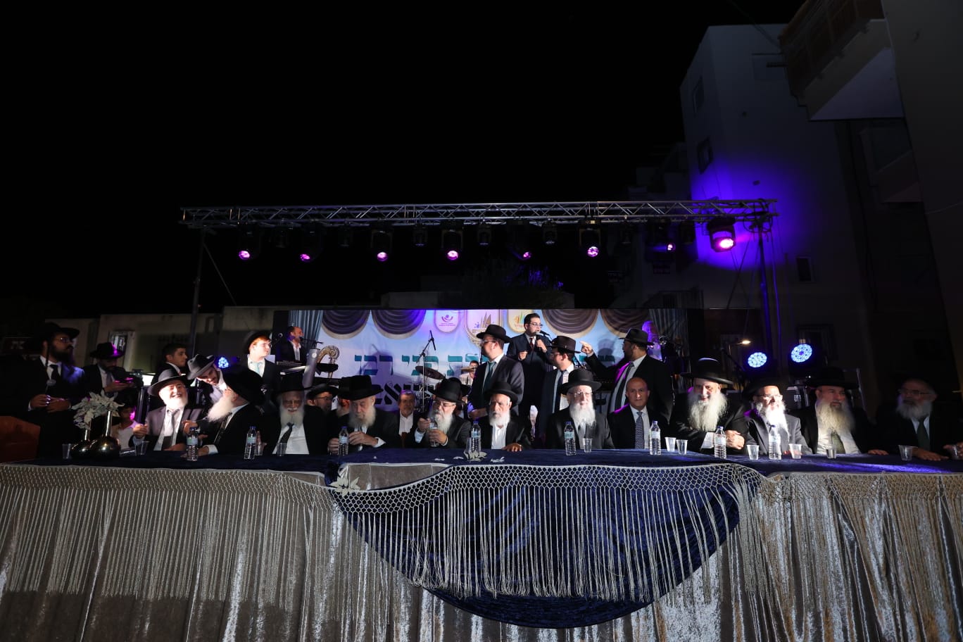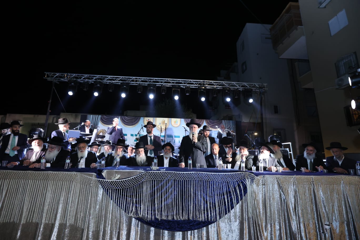 במרכז הבמה ישבו: הראשון לציון הגר"ד יוסף, מרן הגר"ש מחפוד, הגה"צ רבי מאיר כהן נשיא איחוד רבני הקהילות, רב העיר הגר"י שיינין, הגר"מ מוגרבי ר"י כנסת ישראל" וראש העיר ד"ר יחיאל לסרי הי"ו.