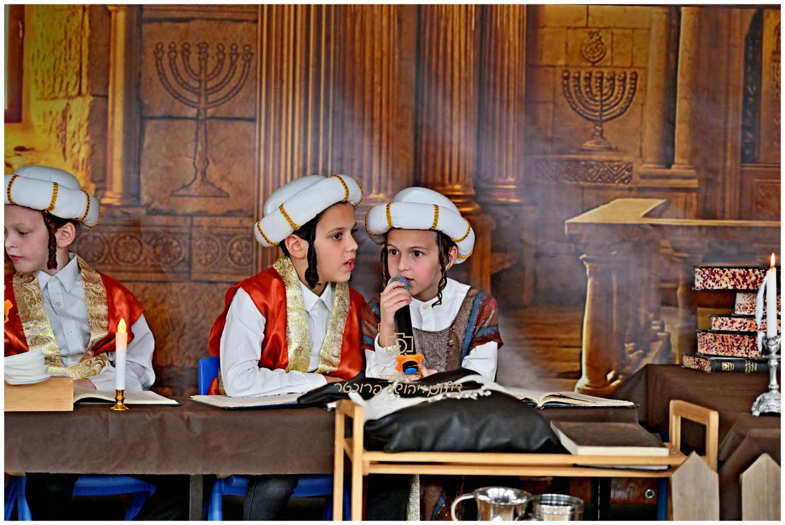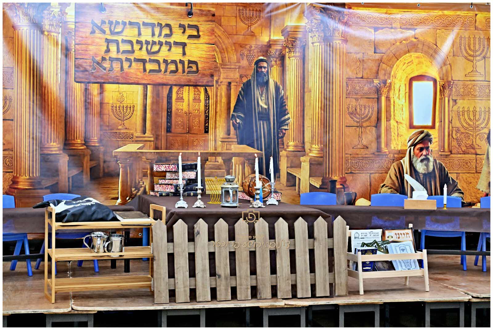 רגע השיא של המעמד נרשם במהלך הצגה ייחודית ומושקעת תחת הכותרת "תורה מיט חסידות און בבל" עם תפאורה מרשימה של ישיבת פומבדיתא העתיקה. התלמידים שהיו לבושים בבגדי התקופה בבבל, הציגו כיצד גם בהיכלי הישיבות הקדומים שילבו הלומדים גאונות בתורה לצד כניעה והתבטלות לצדיקי אמת.