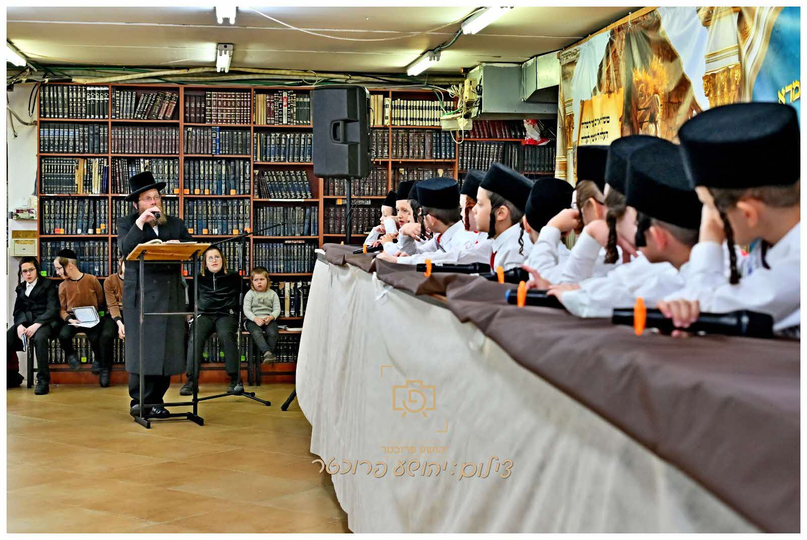 האירוע נפתח בקבלת פנים חגיגית להורים ולסבים, כשברקע שירי שמחה. מנהל הת"ת, הרב מאיר יעקב גרינפלד, קידם את הבאים בברכה ועמד בדבריו על היסוד החינוכי של המוסד: לימוד גמרא מתוך חשק וחיבור פנימי, כשהוא מבאר את המושג "חש"ק" במשמעותו החסידית.