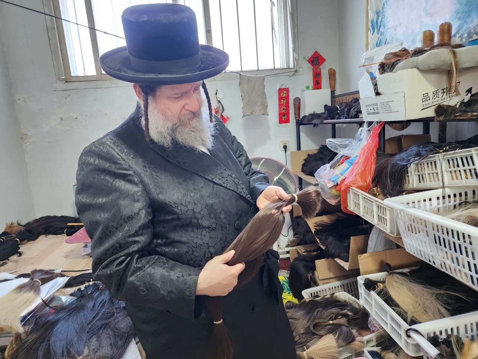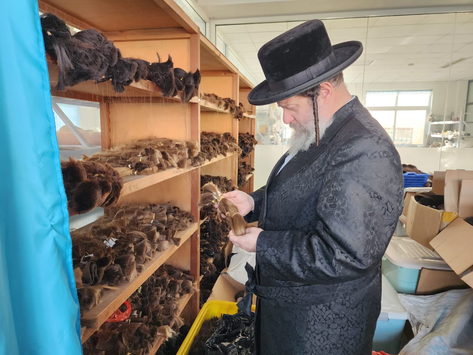 מה לרב ולפיאות נשים? תמונות שהגיעו אלינו מאות מחזה בלתי שגרתי, שבו נראה האדמו"ר משאץ שליט"א כשהוא בוחן שיער המיועד לייצור פיאות. מה לרב ולשיער לפיאות?