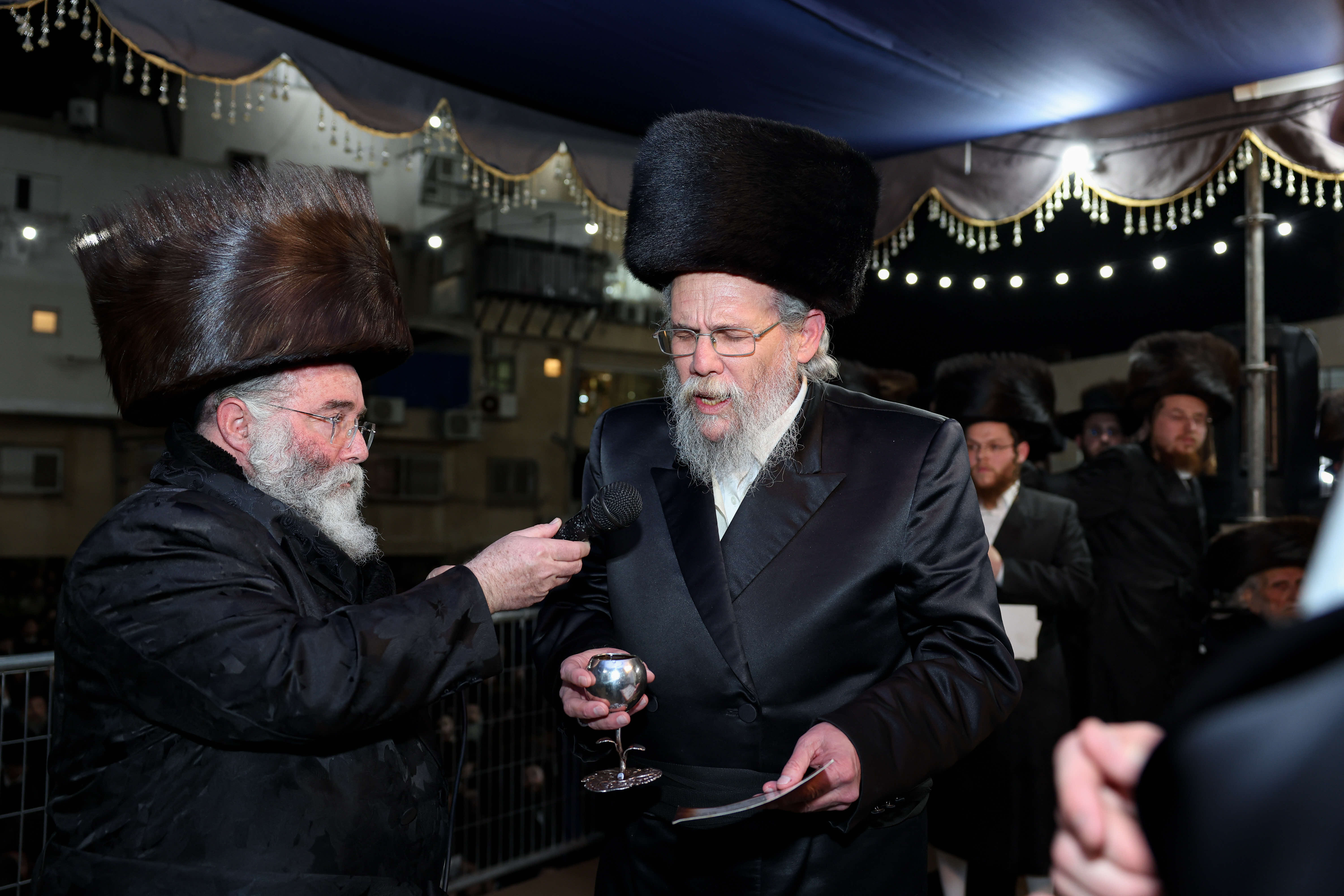 בהשתתפות אדמורי"ם ורבנים וקהל רב נחגגה ביום שני שמחת הנישואין של בן כ"ק מרן אדמו"ר מפיטסבורג שליט"א חתן כ"ק מרן אדמו"ר מקרעטשניף ירושלים שליט"א, עם הכלה בת הגאון רבי אהרן אויערבאך שליט"א בן הגה"צ רבי מרדכי אויערבאך שליט"א רב דק"ק אביר יעקב תל אביב.