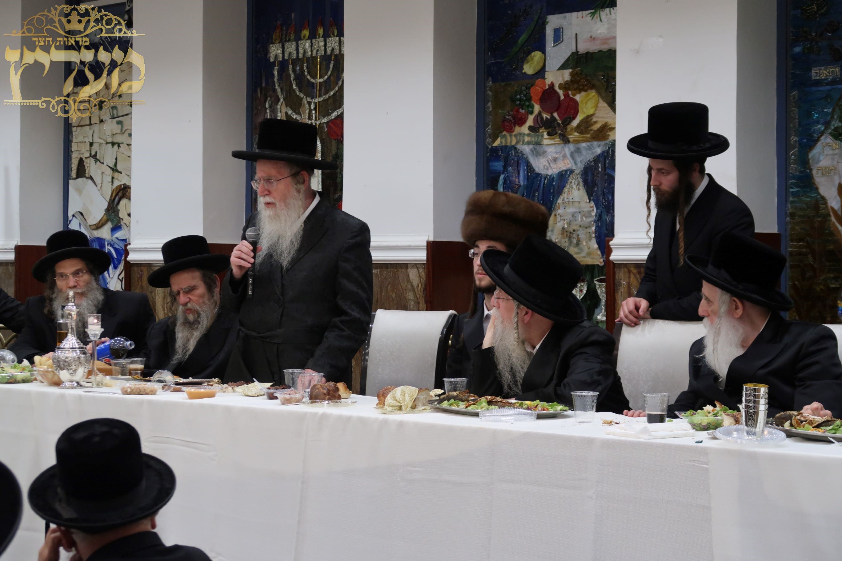 מרן אד"ש נתכבד בקריאת התנאים, הגאון הגדול רבי אשר ווייס שליט"א נשא דברים קצרים לכבוד אחיו הגה"צ שליט"א, אח"כ נתכבד האדמו"ר שליט"א לישא מדברות קדשו לכבוד השמחה.